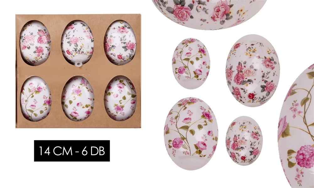 IRIS Műanyag tojás dekoráció virág mintás 14cm 6 darabos