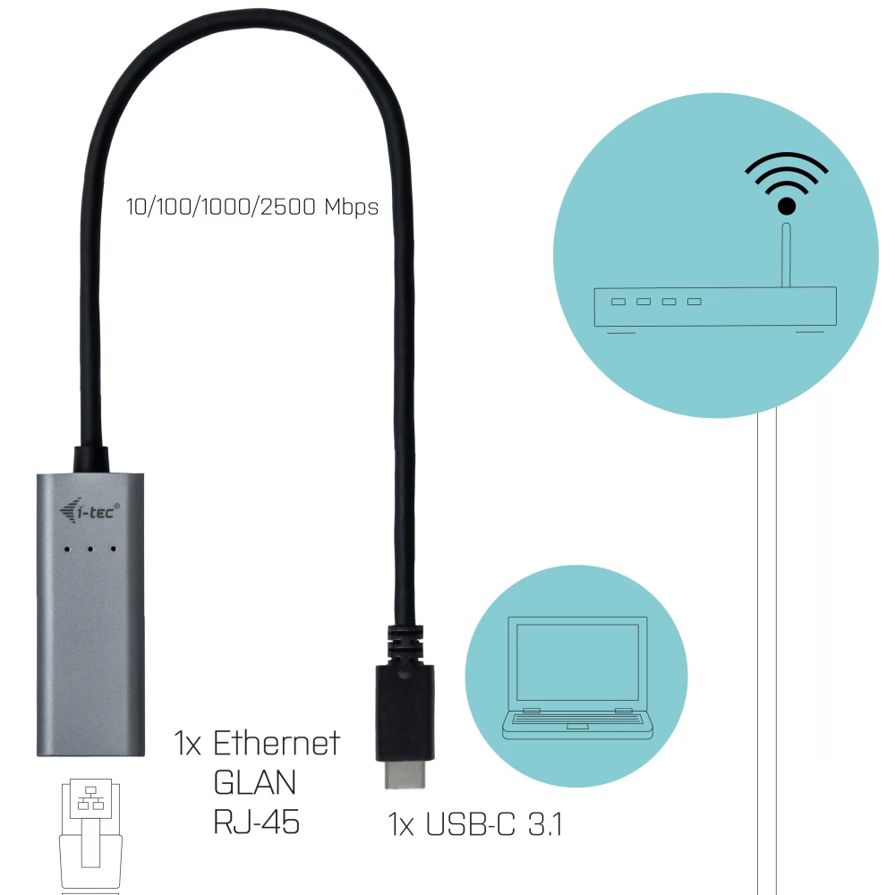 ITEC C31METAL25LAN USB 3.1 Type C UTP Átalakító 30cm 2.5Gbps szürke