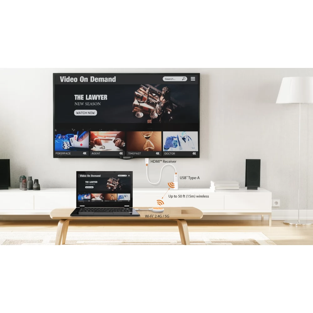 A ScreenCast USB-C Wireless Display HDMI Extender segítségével közvetlen vezetékes kapcsolat nélkül tükrözhetjük mobil eszközeink képét (1080p/Full HD támogatás) TV-re, projektorra, monitorra (HDMI csatlakozós kijelzők).