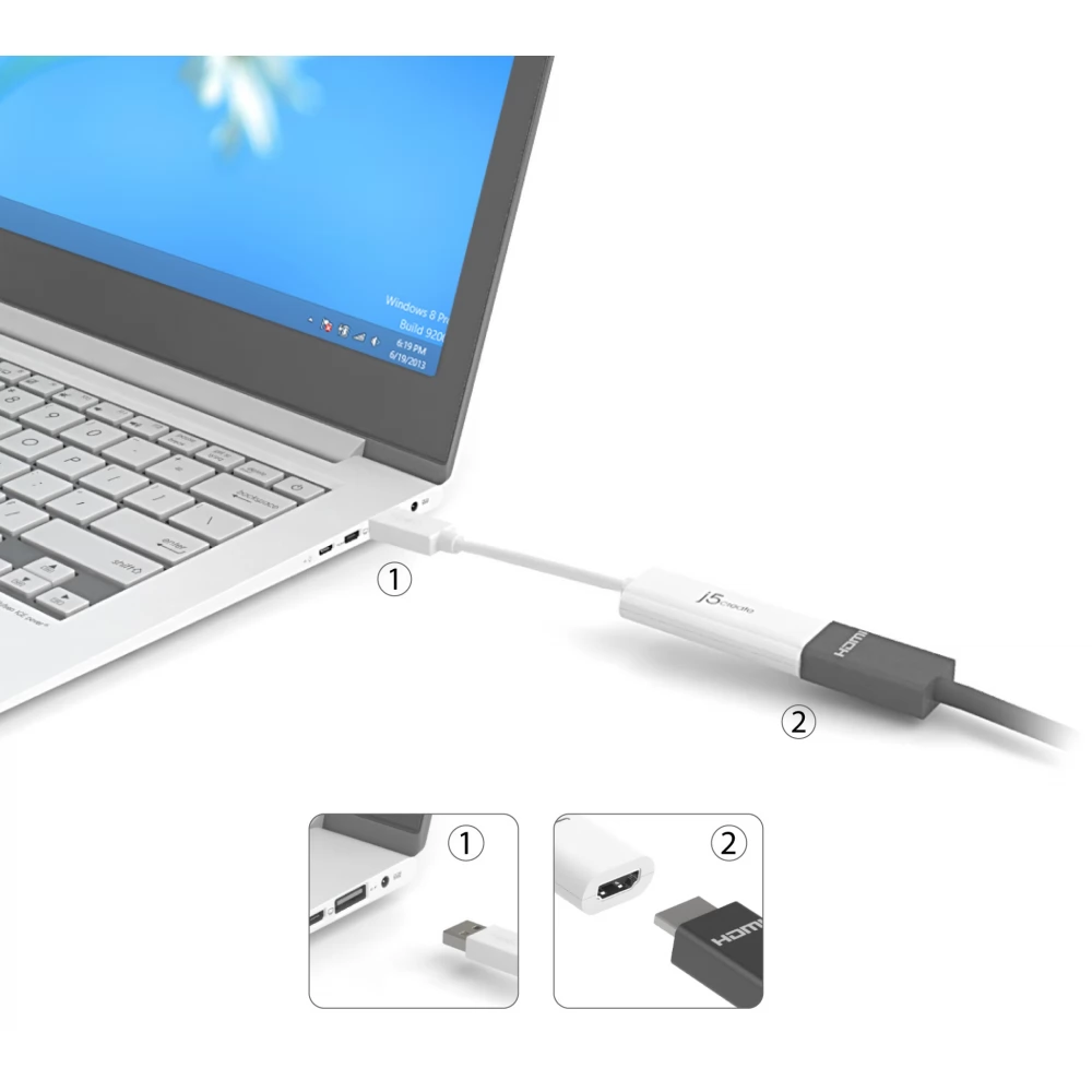 Fehér színű, 5cm hosszú USB 3.0 - HDMI Átalakító kábel.