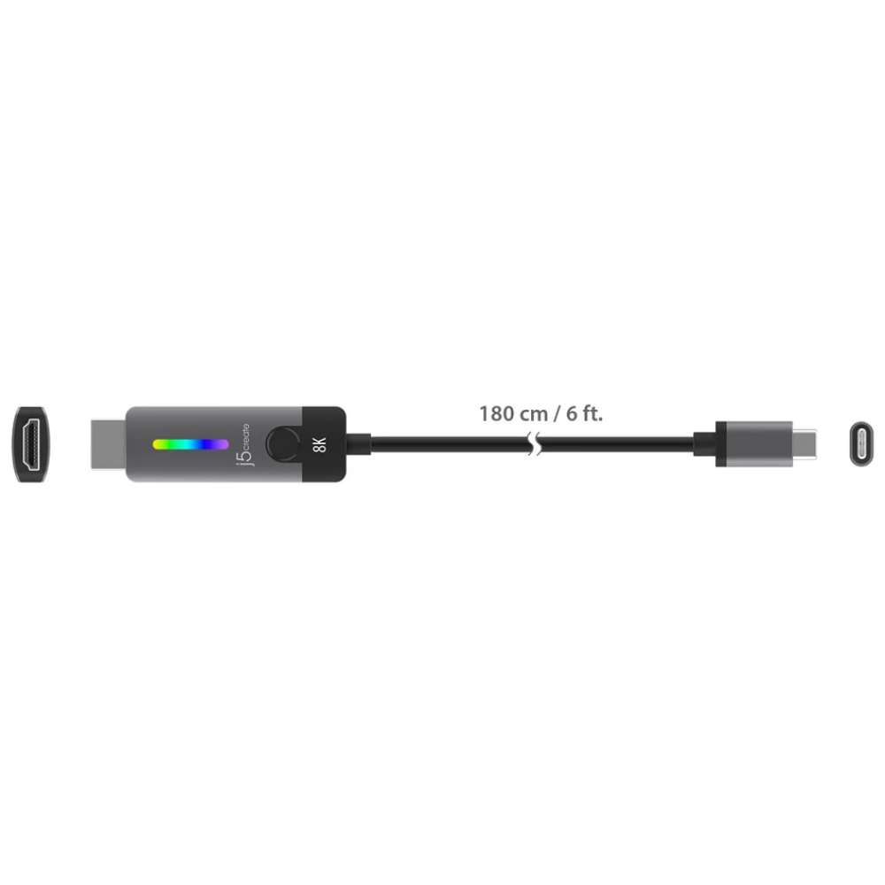 J5CREATE USB 3.1 Type C HDMI 2.1 Átalakító Fekete 1.8m JCC157-N