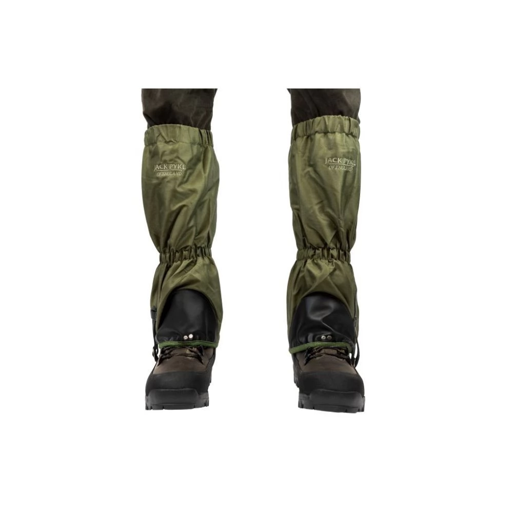 A Jack Pyke lábvédők teljesen vízálló, szívós, légáteresztő lábszárvédők. Úgy tervezték, hogy megvédje alsó lábszárad a zord, durva talajtól és a nedves időjárástól. Ezek a szakadásálló szövet lábszárvédők szárazon tartanak térd alatt. Teljesen szél- és vízállóak, tartósak, a lábszárvédők teljes hosszúságú cipzárral, könnyű tépőzáras és csapos rögzítéssel, kemény csizma alatti dróttal, valamint elasztikus felső és alsó részekkel rendelkeznek, hogy távol tartsák a nedvességet.