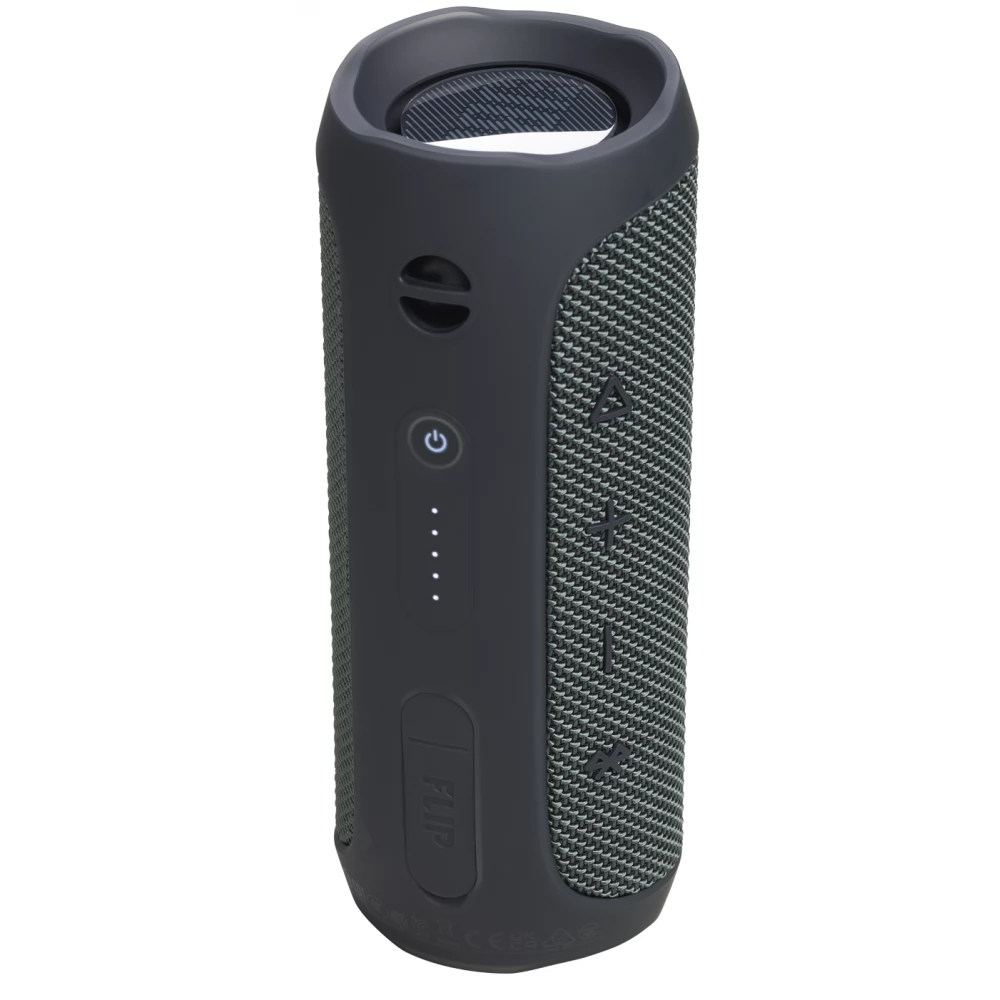 Flip Essential 2 szürke színben, 10 óra lejátszási idővel, 20 W zenei teljesítménnyel.