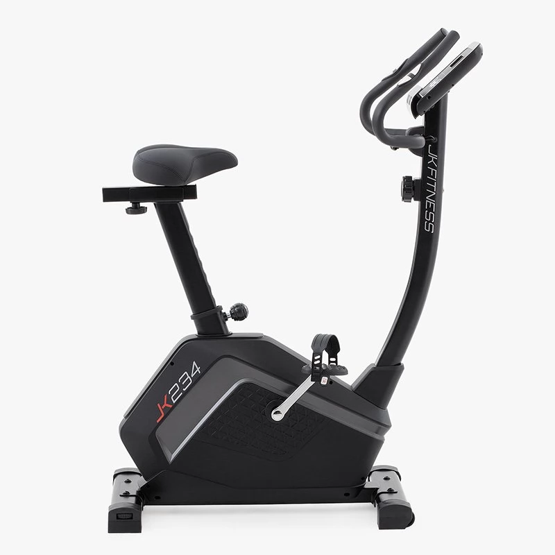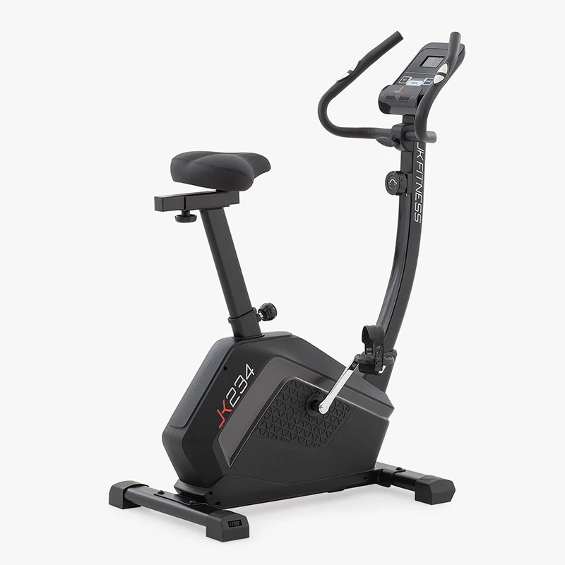 A JK 234 egy közép kategóriás mágneses szobakerékpár az otthoni fitnesz világában, amely 8 kg-os kiegyensúlyozott lendkerékkel és 17 cm-es pedálkarokkal rendelkezik, lehetővé téve a sima és folyamatos tekerést minden sebességnél; az ellenállás beállítása egy középső tekerővel történik, amely 8 könnyen használható szintet kínál.