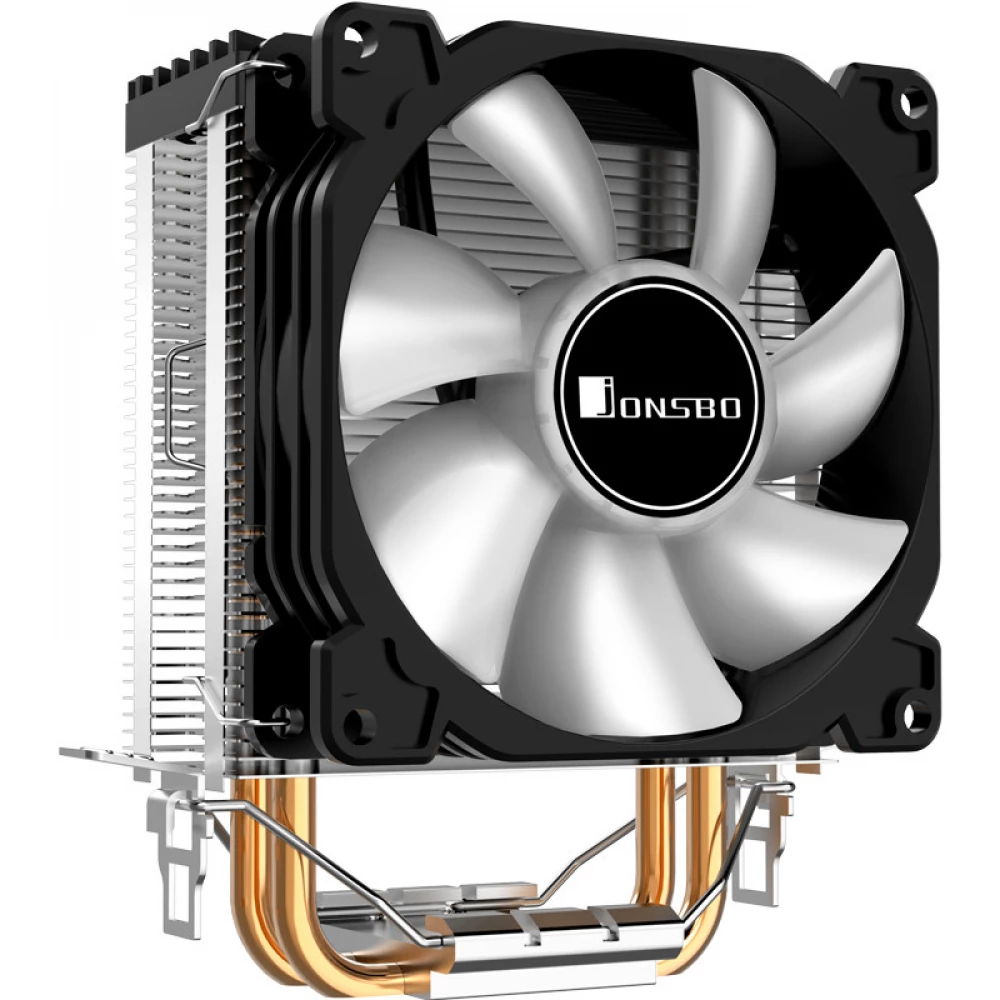 Torony kialakítású, hővezető csöves univerzális CPU hűtő egy 92mm-es RGB világítású ventilátorral (3 tűs csatlakozó).