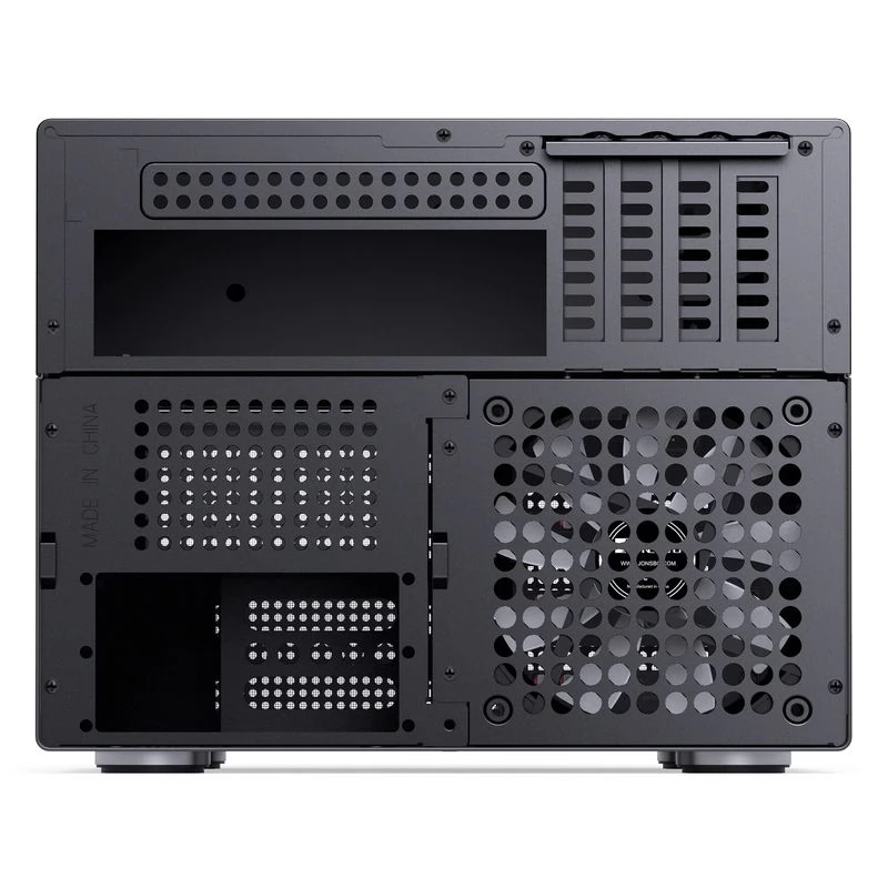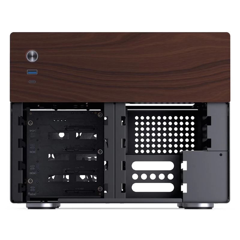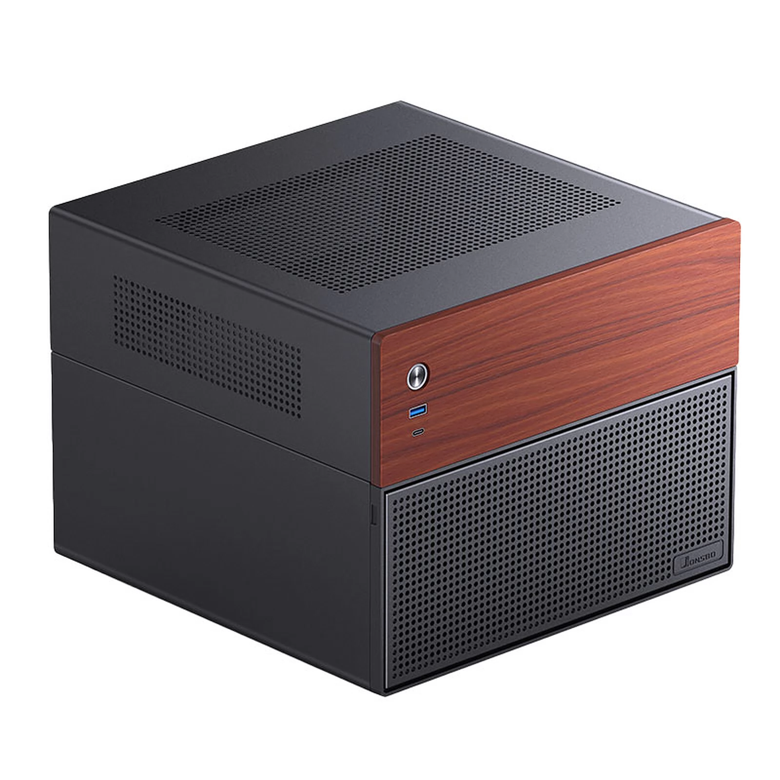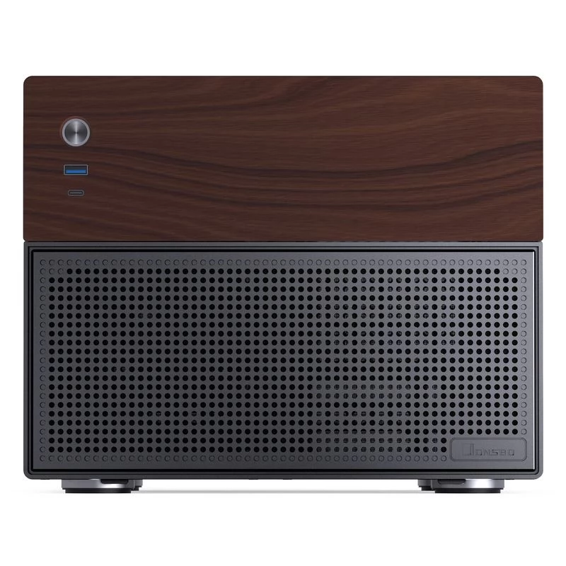 A Jonsbo N4 egy kocka alakú Micro-ATX ház DIY NAS szerverekhez. A NAS ház elegáns kialakítású, beleértve egy elegáns, sötét diófából készült dekoratív csíkot, ami még vonzóbbá teszi.