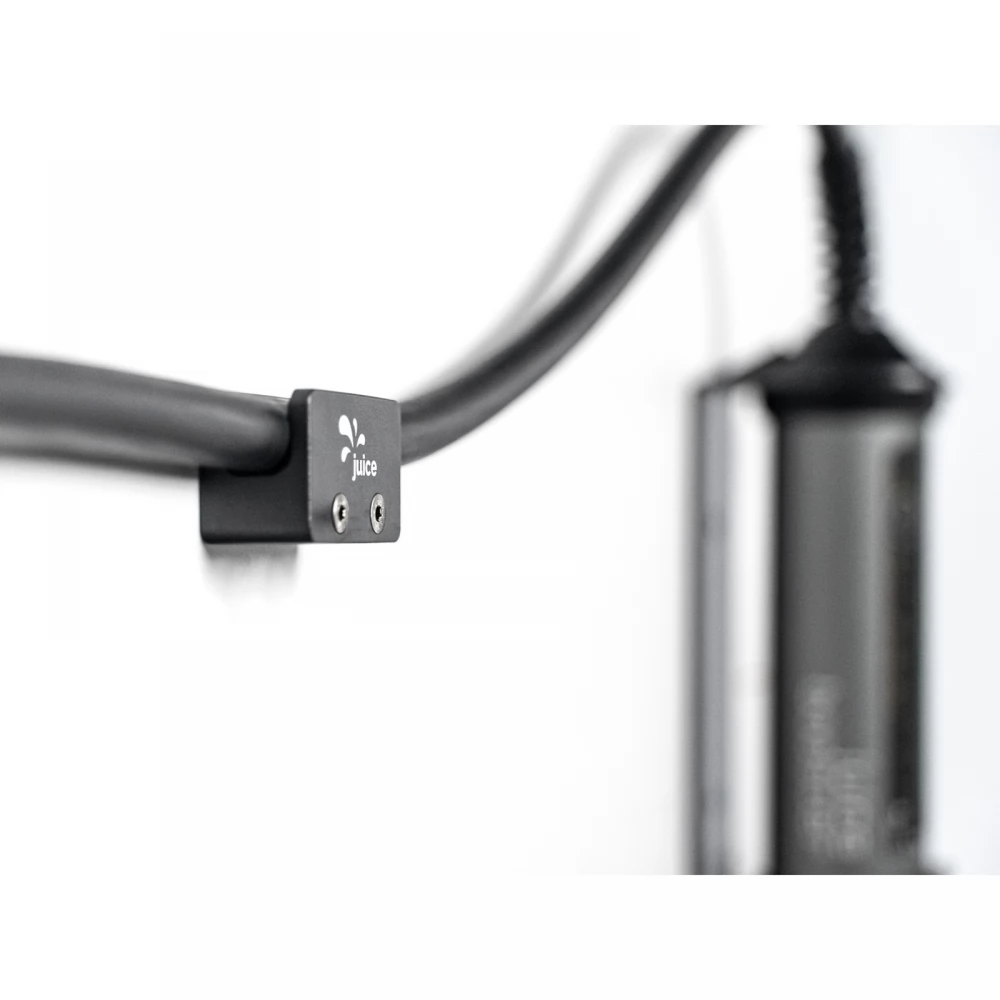 A JUICE BOOSTER 2 EL-JB2CH kábeltartójával garázsa mindig tökéletesen rendezett. A kábelgubancok és a rögtönzött akasztórendszerek mára a múlté. A kábelvályú és a csavarok furatai egy egész alumíniumtömbből készültek. A blokkot összeszerelésre készen szállítjuk. A kábeltartó (antracit porszórt) színe pontosan megegyezik a JUICE BOOSTER 2 fali konzoljának színével. A kábelek könnyen becsatolhatók vagy újra eltávolíthatók.