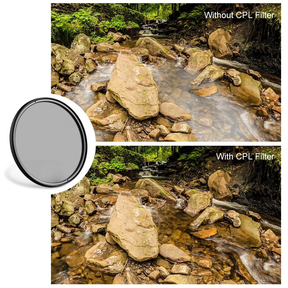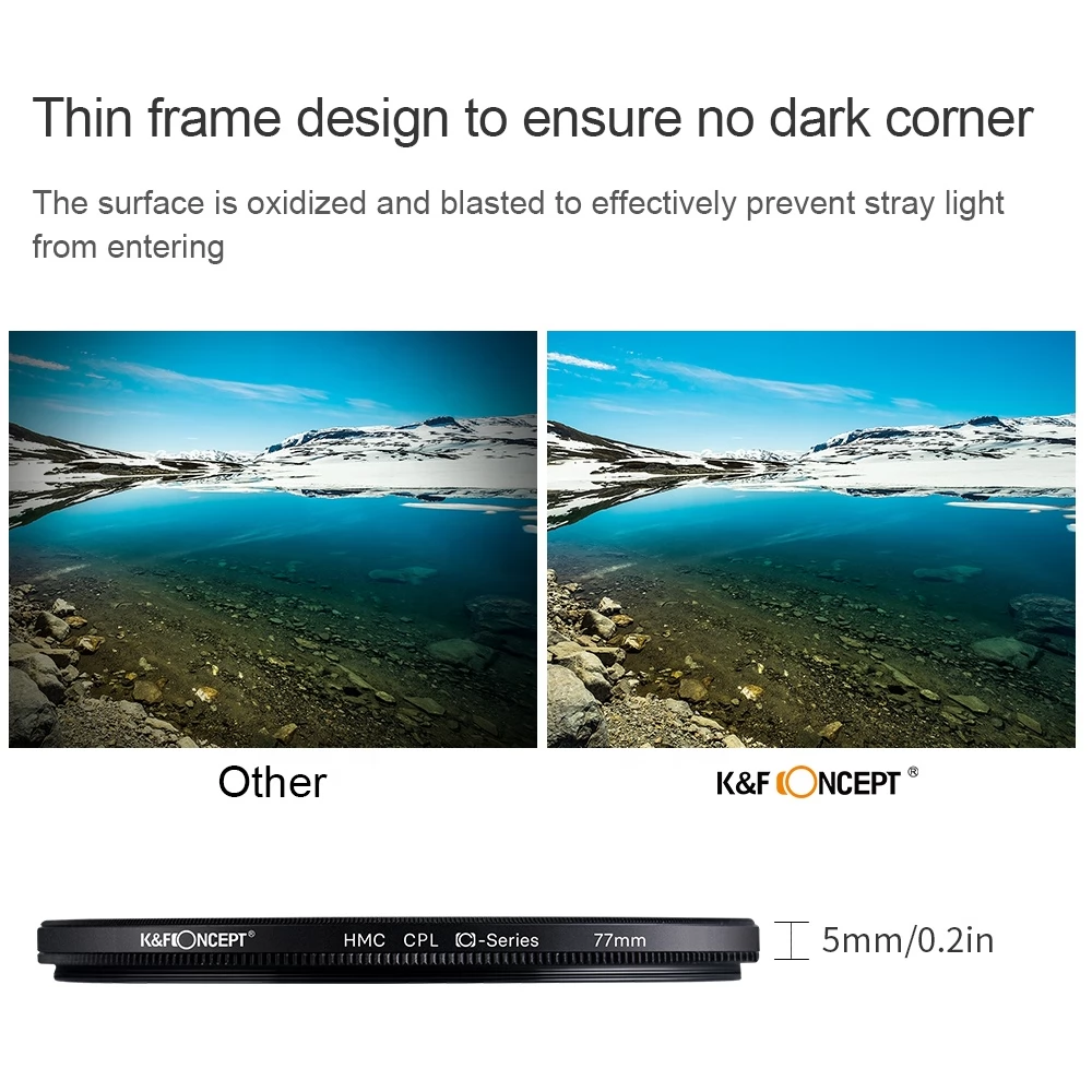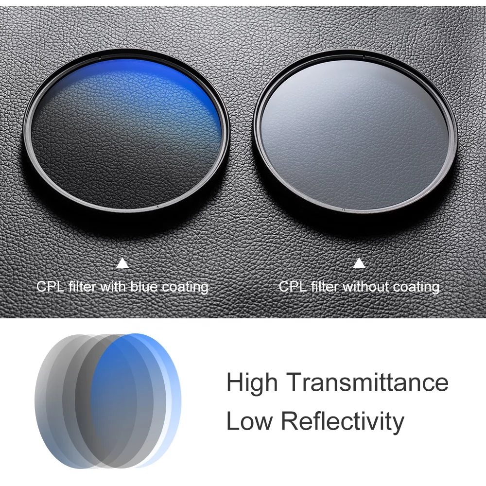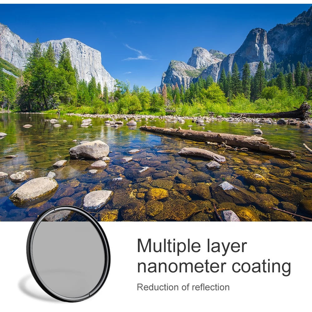 A K&F Concept cirkulár polárszűrő többszörös bevonatú, segít a csökkenteni a felületeken a tükröződéseket, és kiemeli az ég kék színét.
