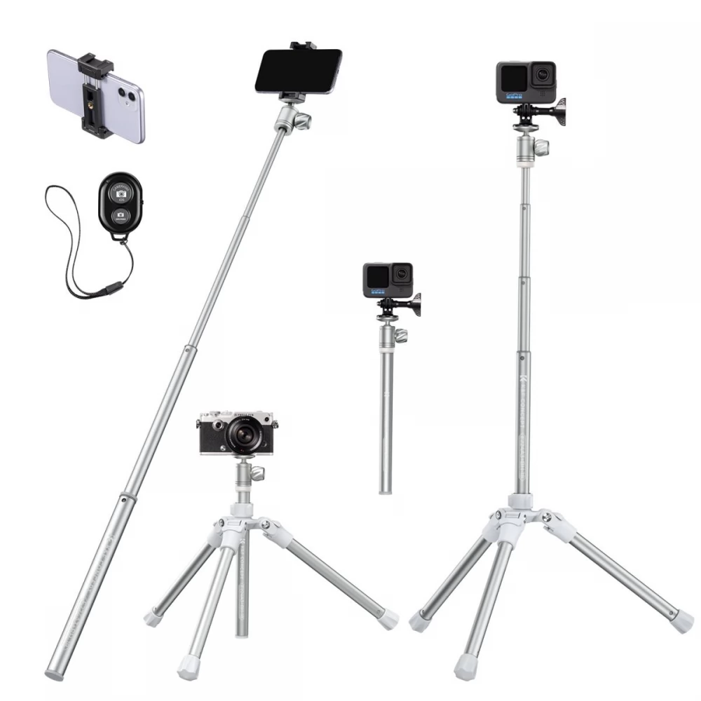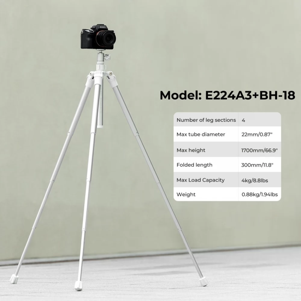 A K&F Concept E224A3+BH-18 egy kompakt, mégis sokoldalú állvány, amely ideális választás vloggerek, utazók, tartalomgyártók és mindennapi felhasználók számára. Akár mobiltelefonnal, akár akciókamerával vagy kis méretű fényképezőgéppel dolgozol, ez az eszköz rugalmasan alkalmazkodik az igényeidhez.