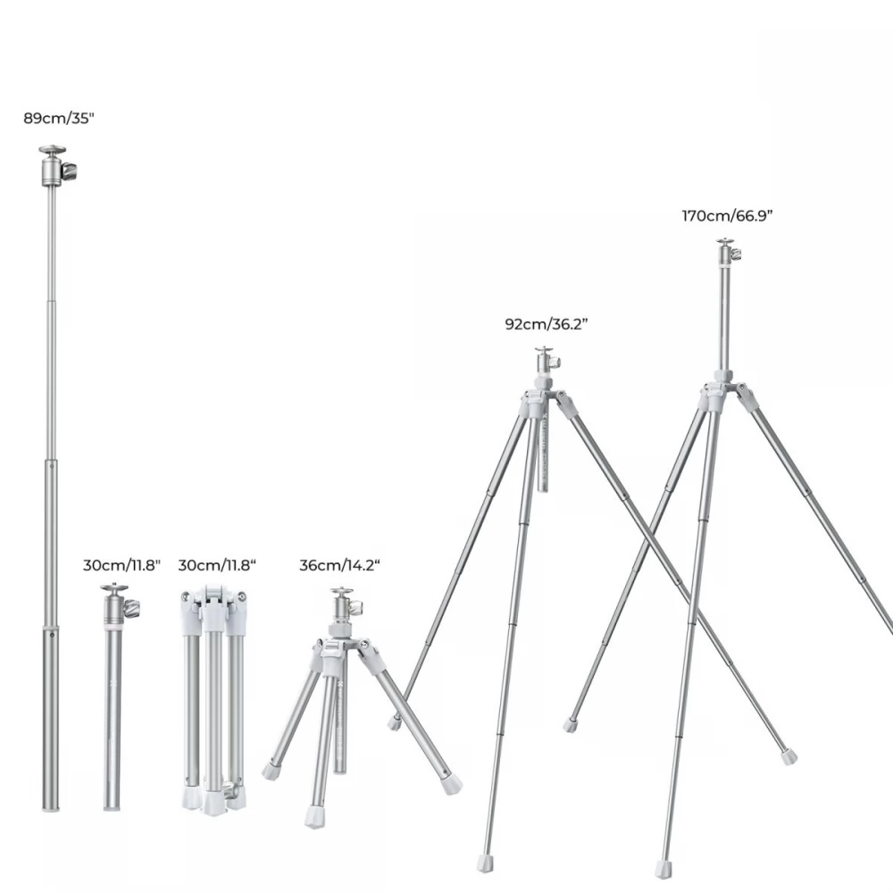Ez a multifunkciós tripod ideális megoldás mindennapi videózáshoz, online tartalomkészítéshez, utazáshoz vagy élő közvetítéshez. A gyorsan és könnyen átalakítható kialakítás megkönnyíti a kreatív munkát bármilyen környezetben.