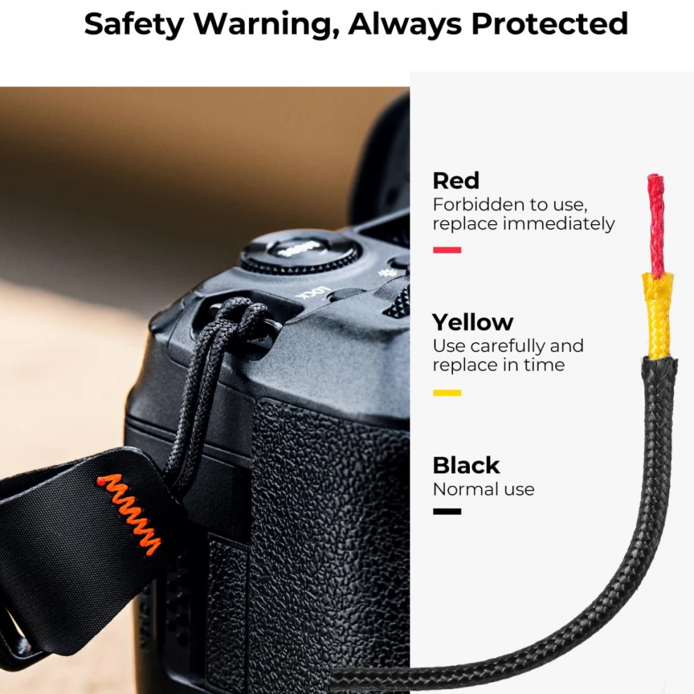 A K&F Concept Camera Wrist Strap a legigényesebb fotósok számára készült. Az autóipari biztonsági övek gyártásánál is használt nylon hevederek használata biztosítja a különféle időjárási viszonyokkal szembeni ellenállást. Ezenkívül antibakteriális és penészesedésgátló tulajdonságai ideális választássá teszik a kihívásokkal teli környezetben dolgozó fotósok számára.