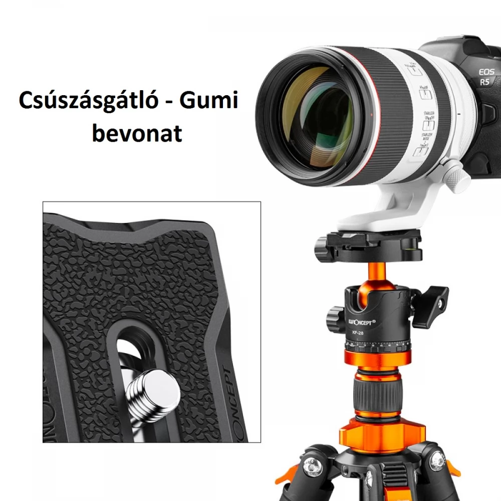 A gyorskioldó lemez gumibevonata nagy érintkezési felülettel rendelkezik, amely növeli a súrlódást, javítja a fogást és megakadályozza a kamera leesését.