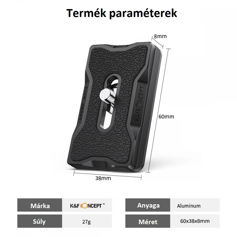 Kiváló minőségű 1/4"-os alumínium gyorscseretalp. Alumíniumötvözet anyagból, CNC precíziós megmunkálás és felületi anódos oxidációs kezeléssel készült. A gyorskioldó lemez lehetővé teszi a felhasználó számára, hogy gyorsan és egyszerűen felszerelje, vagy levehesse a kamerát az állványról anélkül, hogy időt veszítene a menetes rögzítéssel való babrálással.