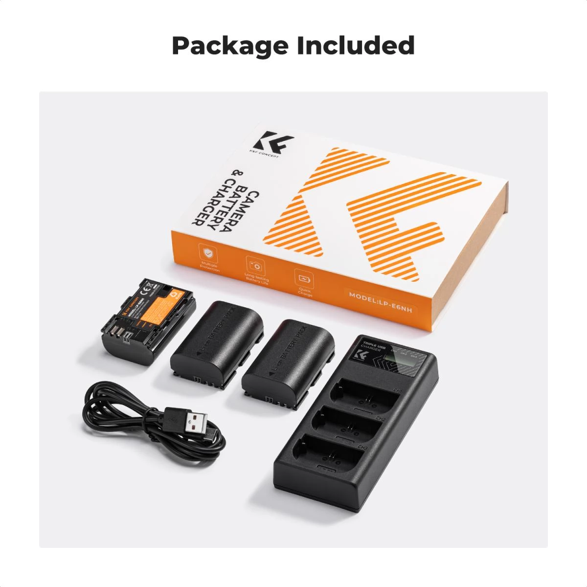 K-F CONCEPT LC-E6P akkumulátor töltő USB-C + 3 db LP-E6P akkumulátor 2250mAh