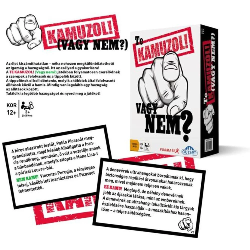 Úgy gondolod jó a szimatod? Egyből tudod, ha valaki kamuzik? És te? Te vajon jól hazudsz, vagy könnyen lebuksz? Itt a lehetőség, hogy kipróbáld magadat a Kamuzol kártyajáték során.
