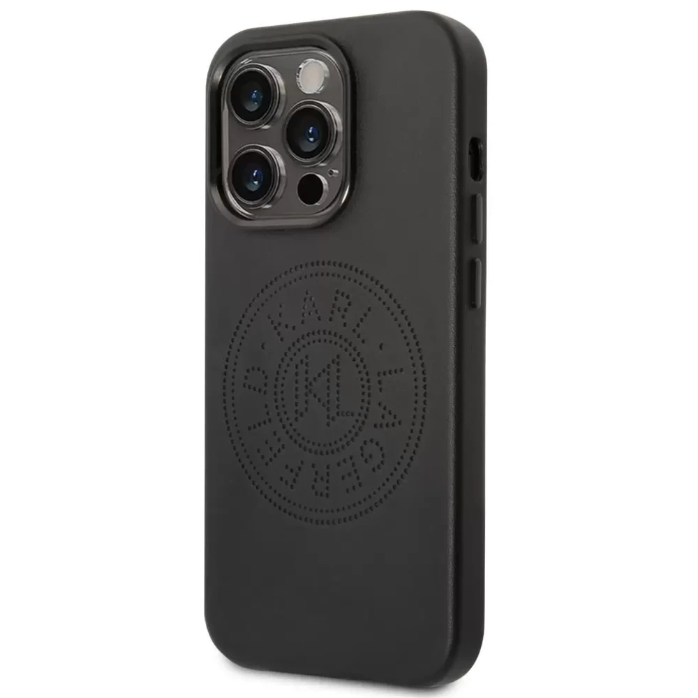 KARL LAGERFELD Leather Perforated Logo műanyag+szilikon tok iPhone 14 Pro Max fekete
