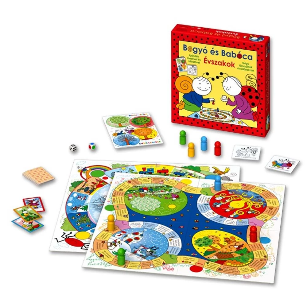 A Bogyó és Babóca mesekönyvek alapján készült Évszakok játékszett különböző nehézségi szintű játékokat tartalmaz, melyekkel a gyerekek fokozatosan fejlődhetnek, miközben remekül szórakoznak. Bogyó és Babóca kalandjai folytatódnak, légy Te is részese ennek! A társasjáték az Évszakok témakörrel foglalkozik, szabályai jól követhetőek, és a legkisebbeknek is van esélyük a győzelemre. A színes játéktábla garantáltan jó kedvet csempész a mindennapokba!