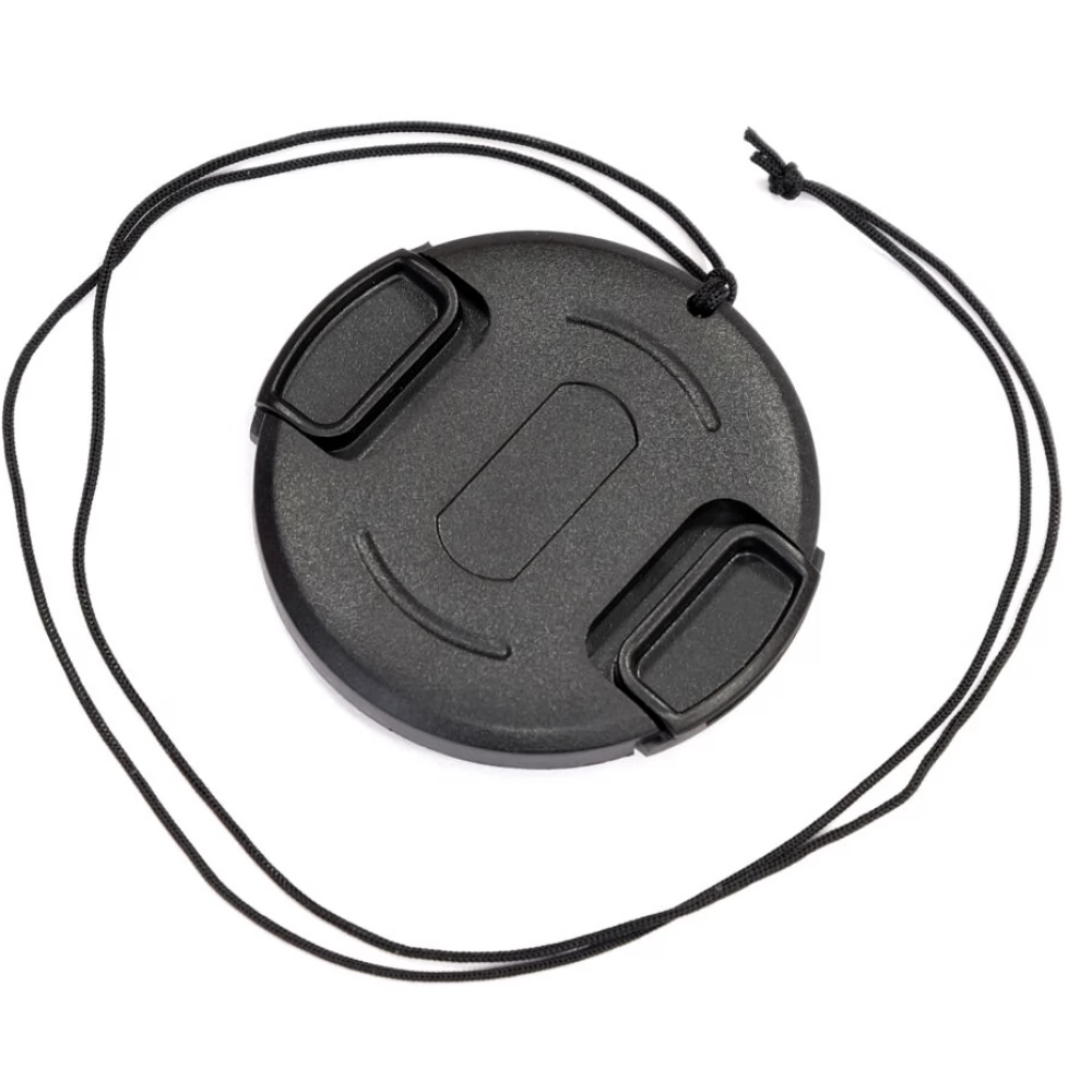 Univerzális objektívvédő sapka 25 cm-es hosszú rögzítő zsinórral.