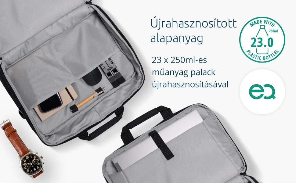 Az EQ laptop laptop táska ideális megoldás olyan professzionális felhasználók számára, akik megfizethető, fenntartható anyagokból készült, utazóbarát táskát keresnek.