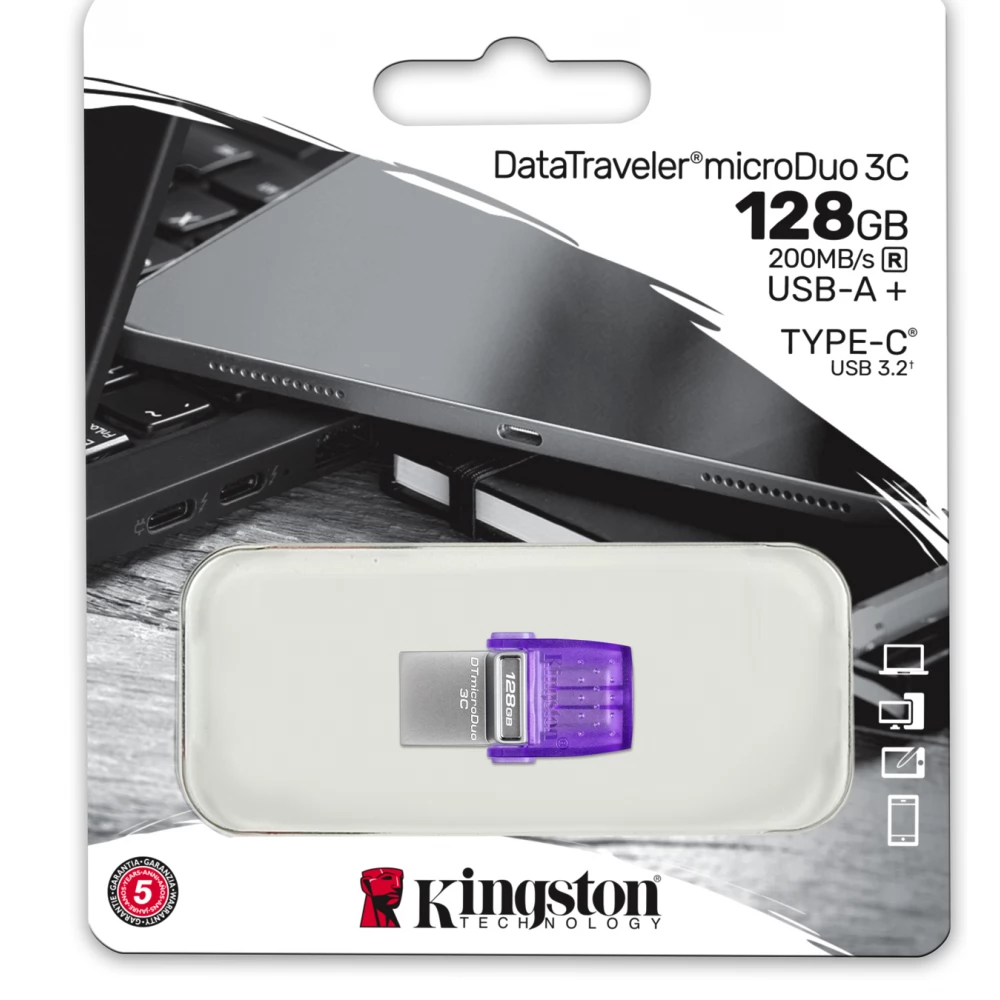 A KINGSTON DataTraveler MicroDuo 3C 128GB USB 3.0 + USB 3.0 Type C tökéletes választás mindenki számára, aki nagy kapacitású, gyors és megbízható adattároló egységet keres. Ez a pendrive kiváló kapacitású és dupla csatlakozóval rendelkezik, ami többféle eszközzel való együttműködést tesz lehetővé. A 128 GB-os tárolókapacitás ismétlődő adatmentésre és nagy adatfájlok továbbítására is megfelelő.