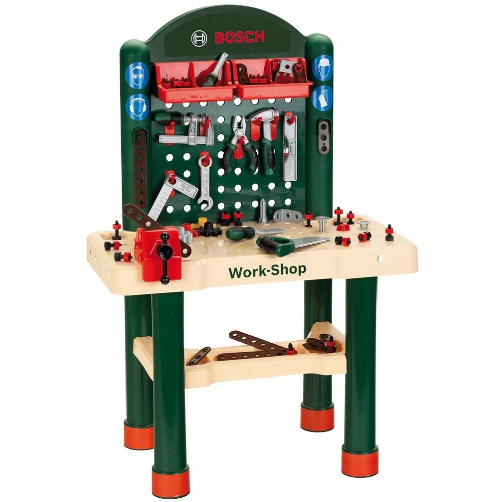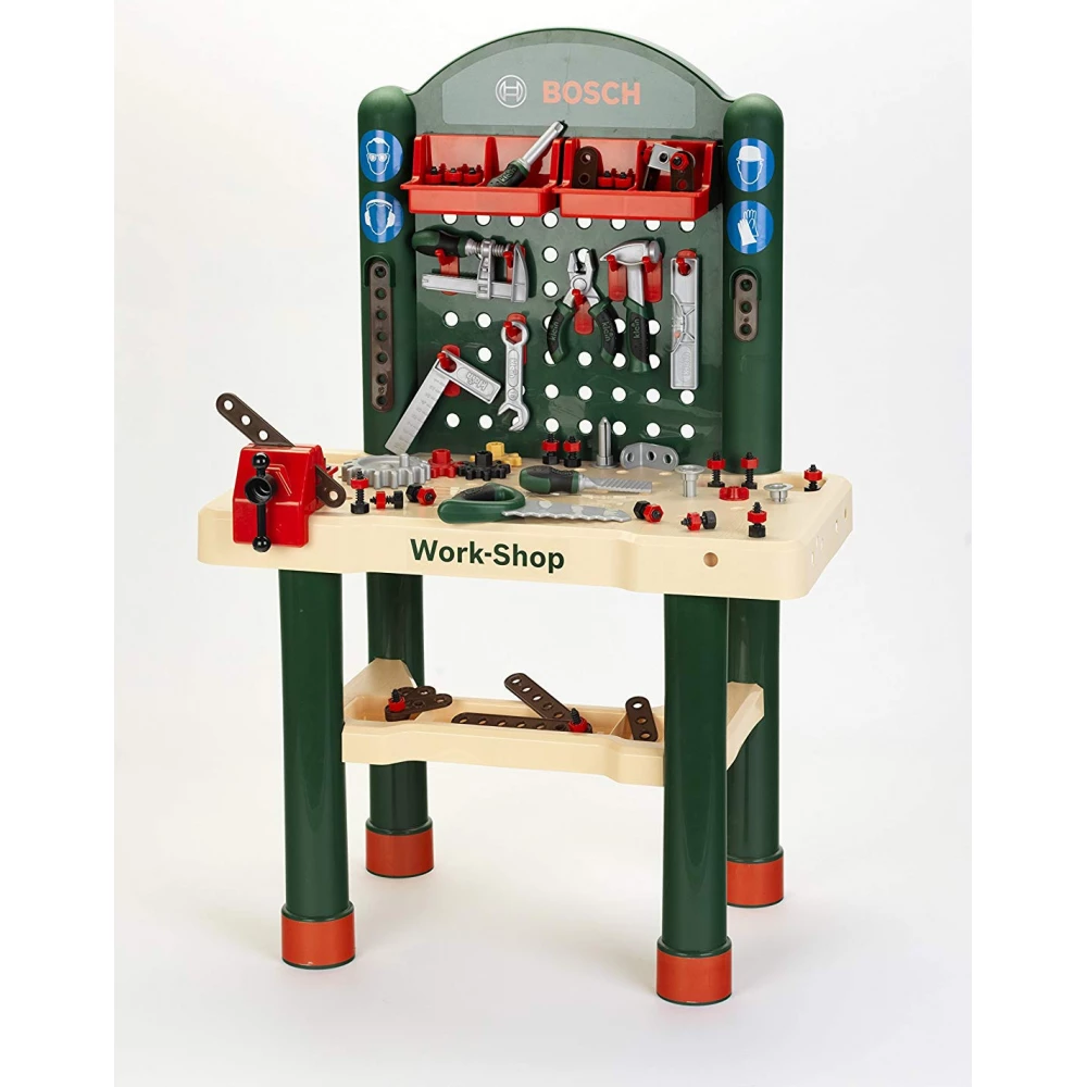 A Bosch 82 részes munkapad készlete nagyszerű lehetőséget kínál arra, hogy a gyerekek megismerkedjenek a legalapvetőbb szerszámokkal és azok használatával. Mérete: 38.5 x 102 x 67.5 cm