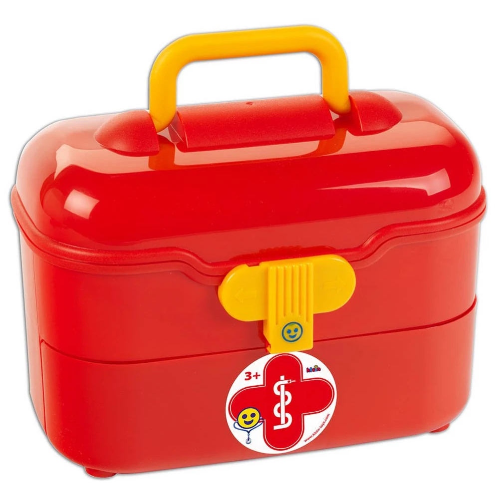 Nagyméretű orvosi táska szett gyerekeknek, többféle alapvető orvosi kiegészítővel. Mérete: 16 x 28 x 20 cm.