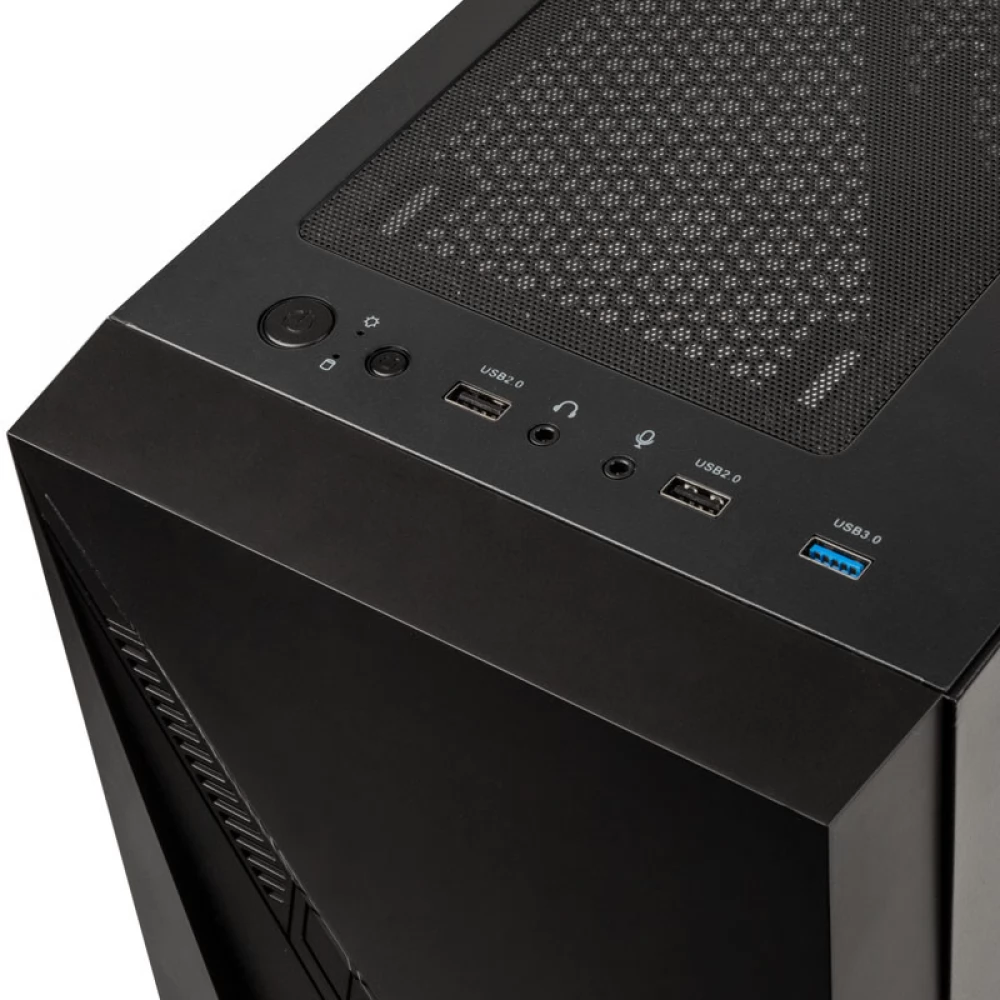 Az előlapot egy részben áttetsző csík hangsúlyozza, amely mögé digitálisan címezhető RGB LED szalag csatlakozik. Az előlap tetején található az I/O panel USB 2.0 és USB 3.0 portokkal, valamint az RGB világítás vezérlése. A színezett edzett üvegből készült oldalpanel teszi teljessé az Inspire K2 stílusos kialakítását.
