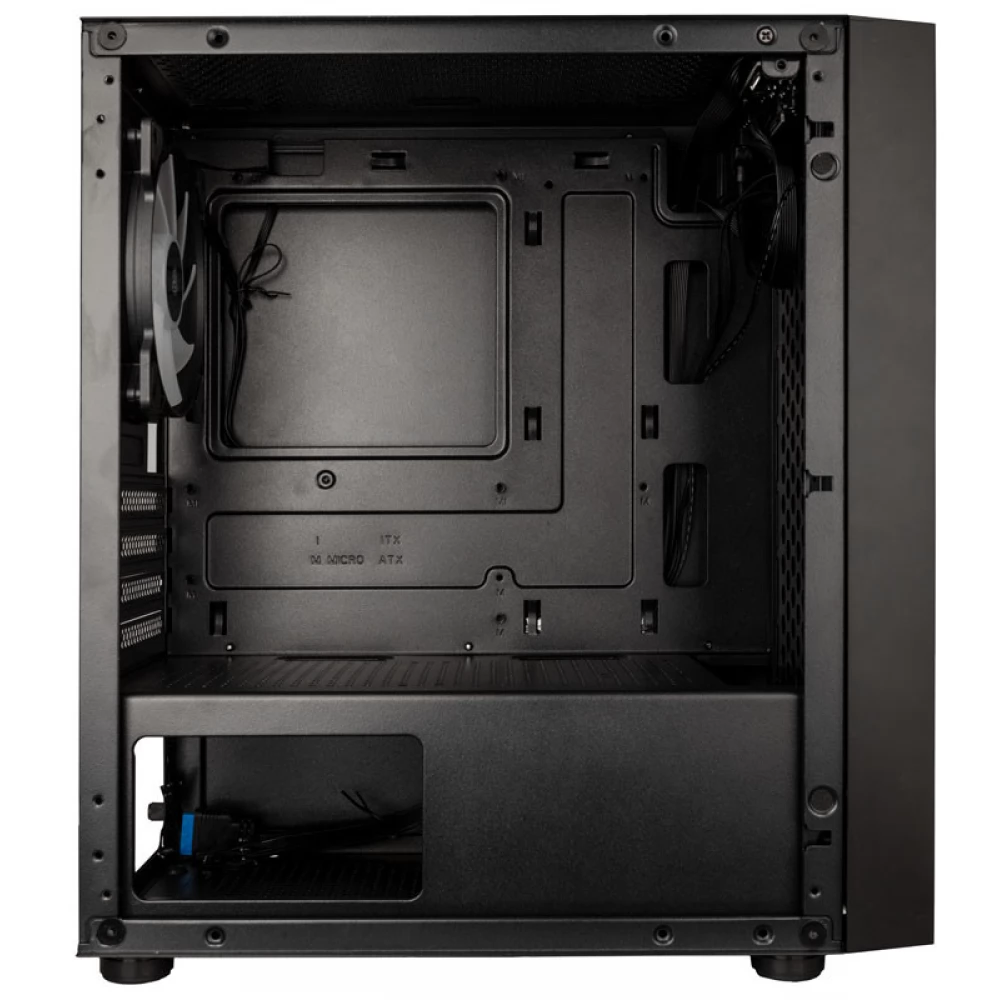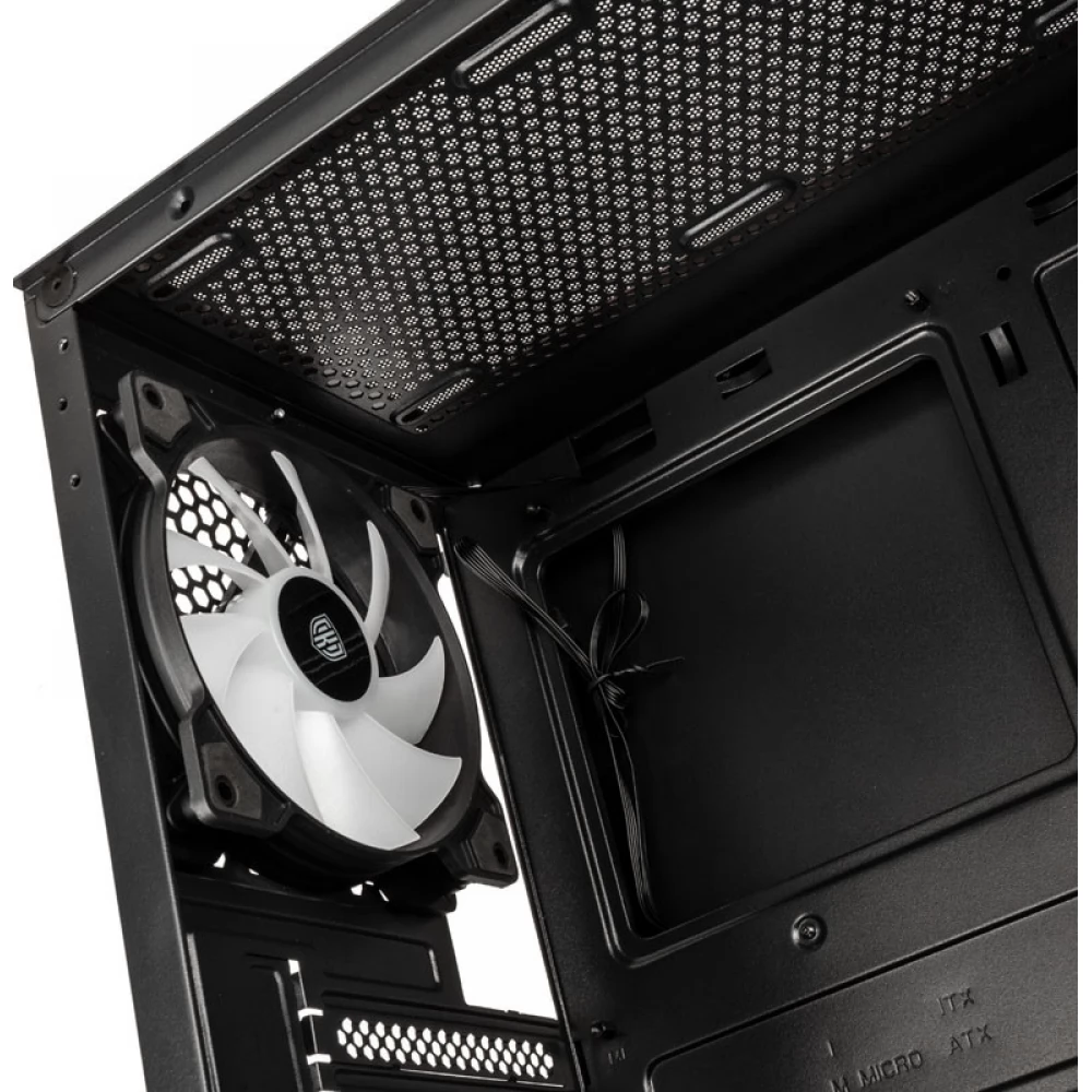 Belül van hely egy Micro-ATX vagy Mini-ITX alaplap számára, a grafikus kártya max 300 mm hosszú lehet, és elegendő hely van a 150 mm-es CPU-hűtő számára. Elöl két 120 vagy 140 mm-es ventilátor helyezhető el, további két 120 mm-es ventilátor rögzíthető a fedélre, 1db 120 mm-es ARGB ventilátor már előre telepítve van hátul.