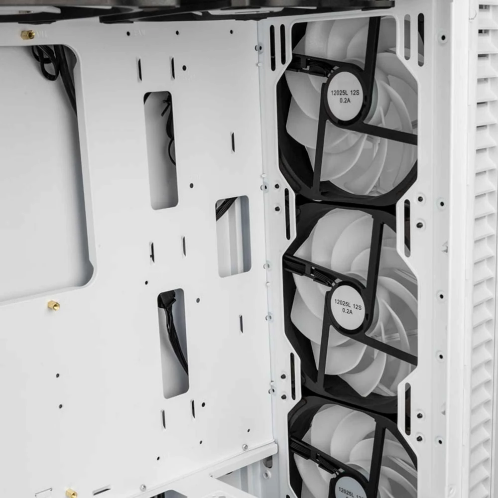 Alternatív megoldásként akár három 120 mm-es ventilátor is felszerelhető az előlapra, míg két 140 mm-es ventilátor rögzíthető a fedélre. Ezenkívül a tápegység fedelén két 120 mm-es ventilátor található, amelyek a tápegység kamrájának és a grafikus kártyának közvetlen hűtését biztosítják.