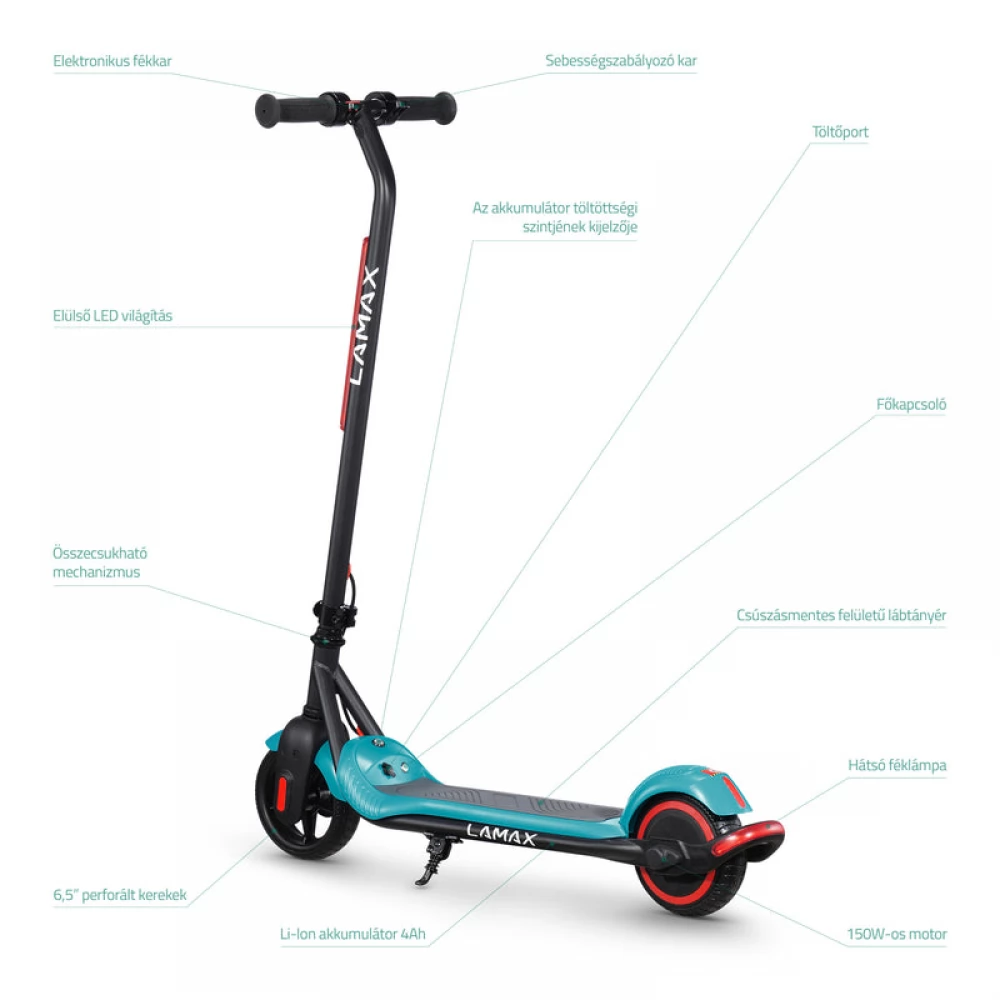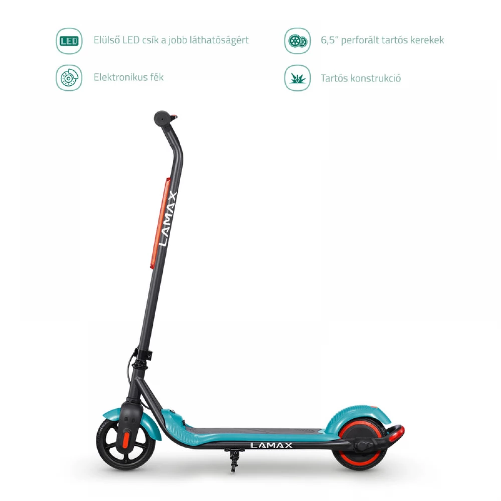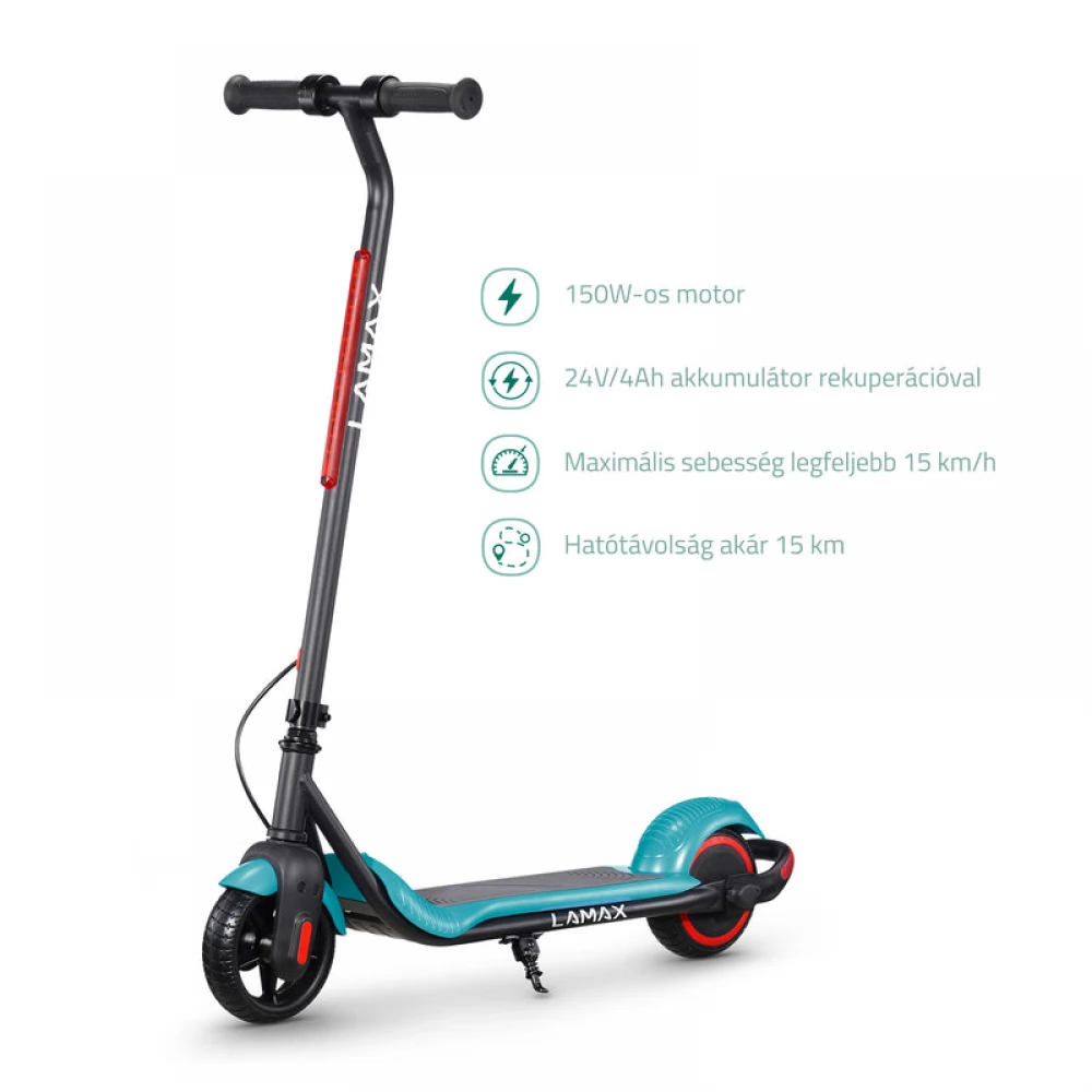 A LAMAX eFlash SC20 gyermek elektromos robogó 150 W-os motorral, 24 V/4 Ah akkumulátorral, 15 km-es hatótávolsággal és 15 km/h végsebességgel ideális a fiatal motorosok számára. Súlya mindössze 7 kg, maximális terhelhetősége 60 kg, LED világítás a jobb láthatóság érdekében, összecsukható kormány a könnyű tárolás érdekében, elektronikus fék, 6,5” tartós perforált kerekek.