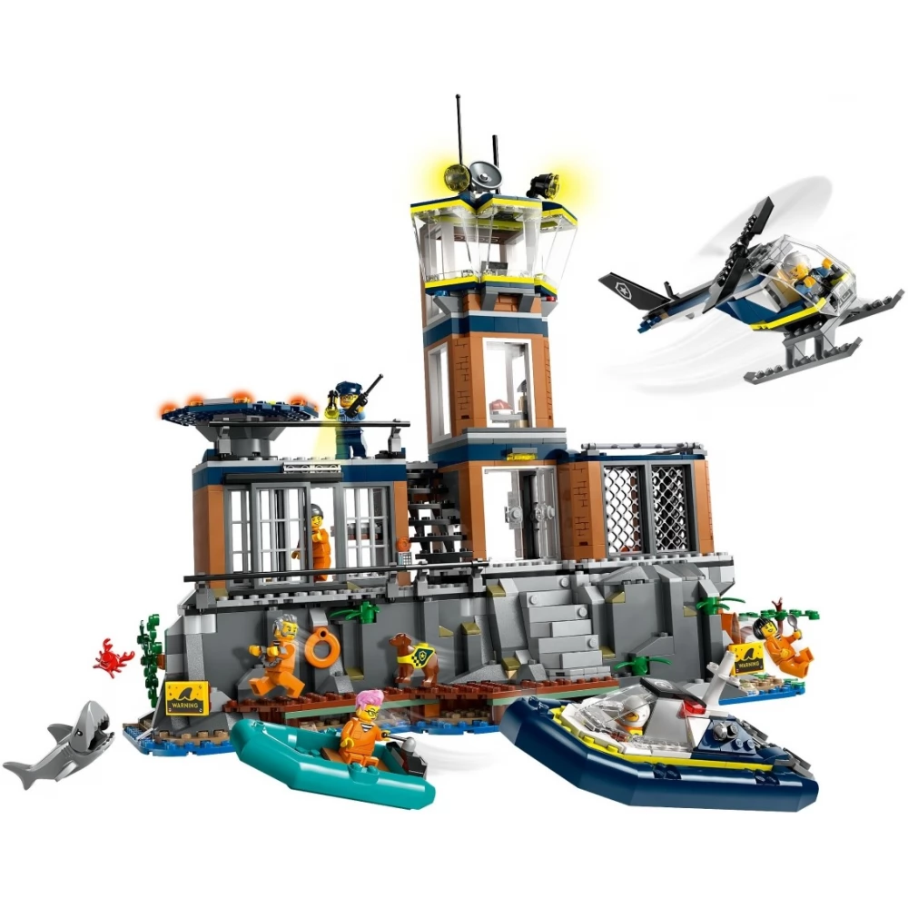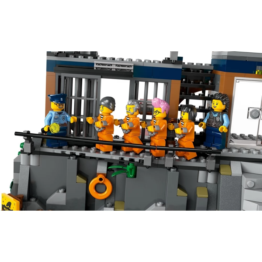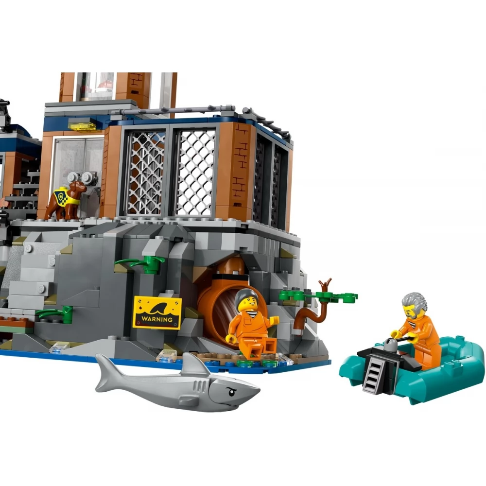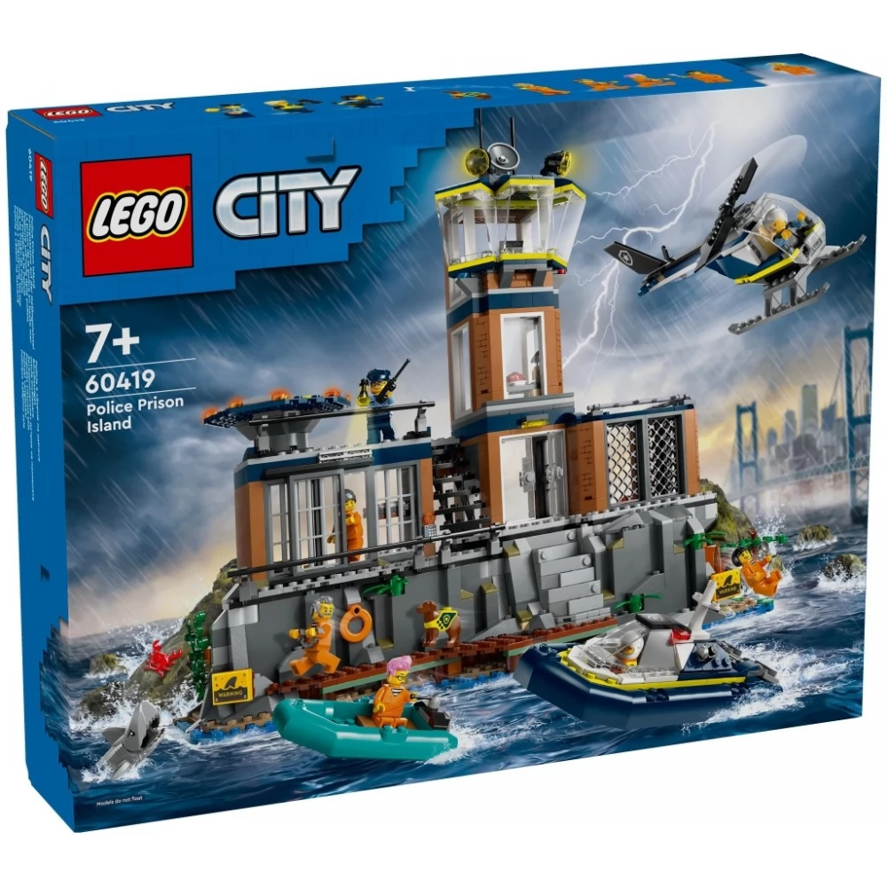 A LEGO City Rendőrségi börtönsziget (60419) a város leghírhedtebb szélhámosainak ad otthont, de nekik más terveik is vannak! Akciódús kalandok várnak rád ezzel a fantasztikus játékkészlettel, amely egy sziklaparti börtönt tartalmaz, és tele van funkciókkal. Tartalmaz továbbá egy helikoptert, egy rendőrségi motorcsónakot, egy gumicsónakot, 3 rendőrtiszt és 4 fogoly minifigurát, valamint rendőrkutya- és cápafigurákat. Ez a börtönszigetes játék tele van belső részletekkel a fantáziadús játékhoz, beleértve a vezérlőszobát, a személyzeti pihenőszobát, az előcsarnokot, az udvart titkos menekülőnyílással, a kennelszobát, a cellát ágyakkal és a menekülő alagutat, amely egy elhagyott bányába vezet, plusz egy rab mosókonyháját a börtönből való szökést elősegítő eszközökkel. A további részletek közé tartozik a helikopter-leszálló és a sziklafal laza sziklával a robbanásszerű távozáshoz. A LEGO Builder alkalmazással a fiatalokra izgalmas építési kaland vár. Az alkalmazásban játékkészleteket fedezhetnek fel és menthetnek el, nyomon követhetik az építési haladásukat, valamint építés közben felnagyíthatják és elforgathatják 3D-ben, hogy minden szögből megjelenítsék a modellek képét.