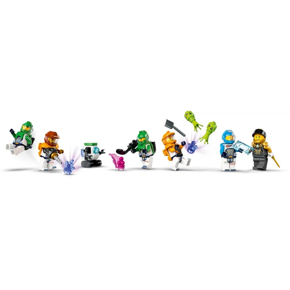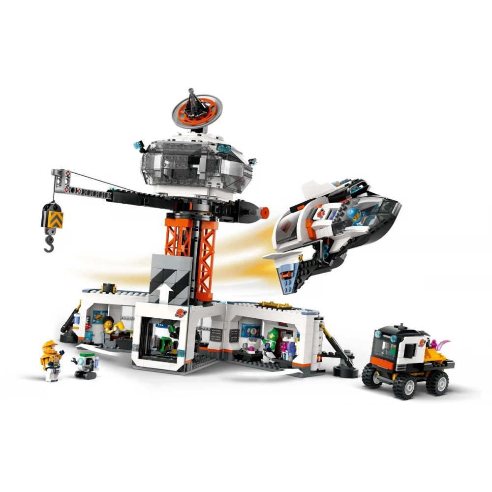 A LEGO City Űrbázis és rakétakilövő (60434) űrkutató játék tele van funkciókkal az e világon kívüli kalandokhoz. A fő szektor felett egy vezérlőterem és egy 360°-os űrdaru torony található, amelyből a kör alakú felszereléstároló, a tudományos labor és a pihenő terület érhető el. A készlet tartalmaz még egy űrhajót, egy kilövőállást, egy járművet építkezéshez, kivitelezéshez és egy bolygójelenetet játék energiakristályokkal és növényzettel, valamint 6 űrlegénységi minifigurát, 1 robotot és 2 földönkívüli figurát az ötletes szerepjátékhoz. A LEGO Builder alkalmazással a fiatalokra izgalmas építési kaland vár. Az alkalmazásban játékkészleteket fedezhetnek fel és menthetnek el, valamint építés közben felnagyíthatják és elforgathatják 3D-ben, hogy minden szögből megjelenítsék a modellek képét. A LEGO City űrkészletek valósághű járművekkel, részletgazdag szerkezetekkel és inspiráló karakterekkel érkeznek a korlátok nélküli fantáziadús játékhoz. A készletben megtalálható űrhajó tartalmaz egy speciális légzsilip elemet, amely más, (külön megvásárolható) kompatibilis, űrtémájú LEGO játékkészletekhez csatlakoztatható a még nagyobb kalandokért!