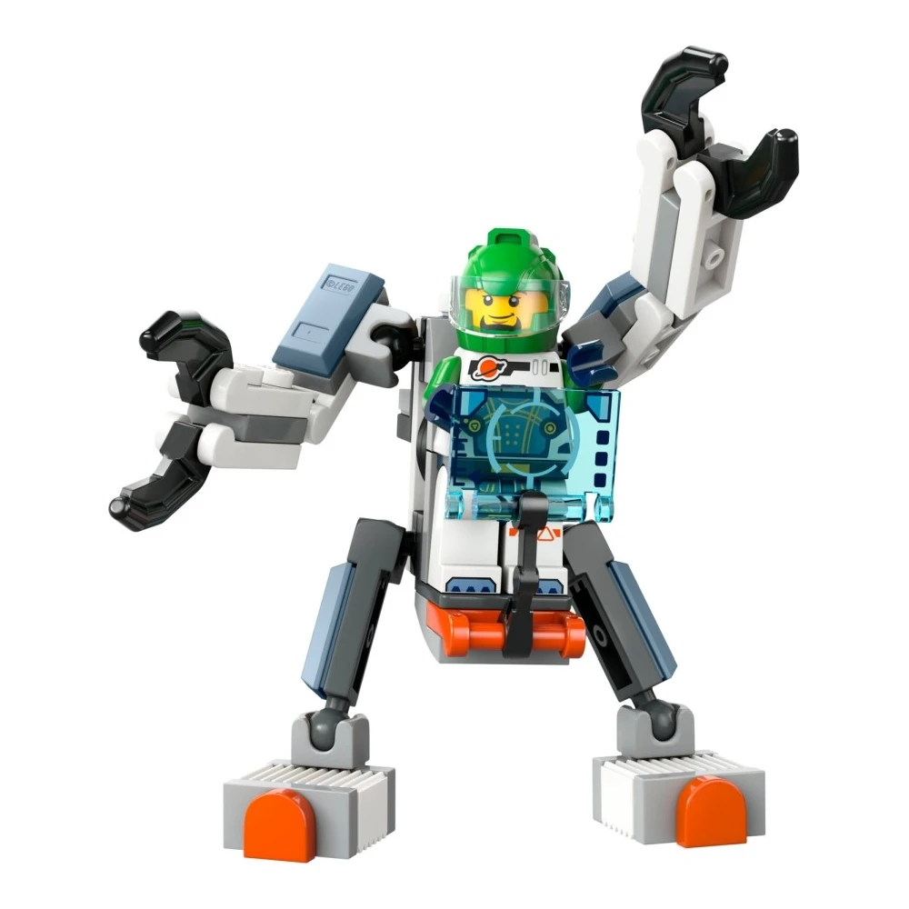 Lepj meg egy ifjú űrrajongót a futurisztikus LEGO® City Űrkutató robotpáncéllal, amelynek markoló kezeivel és hatalmas lábaival messzi bolygókat járhat be. A szett része egy űrhajós minifigura is.