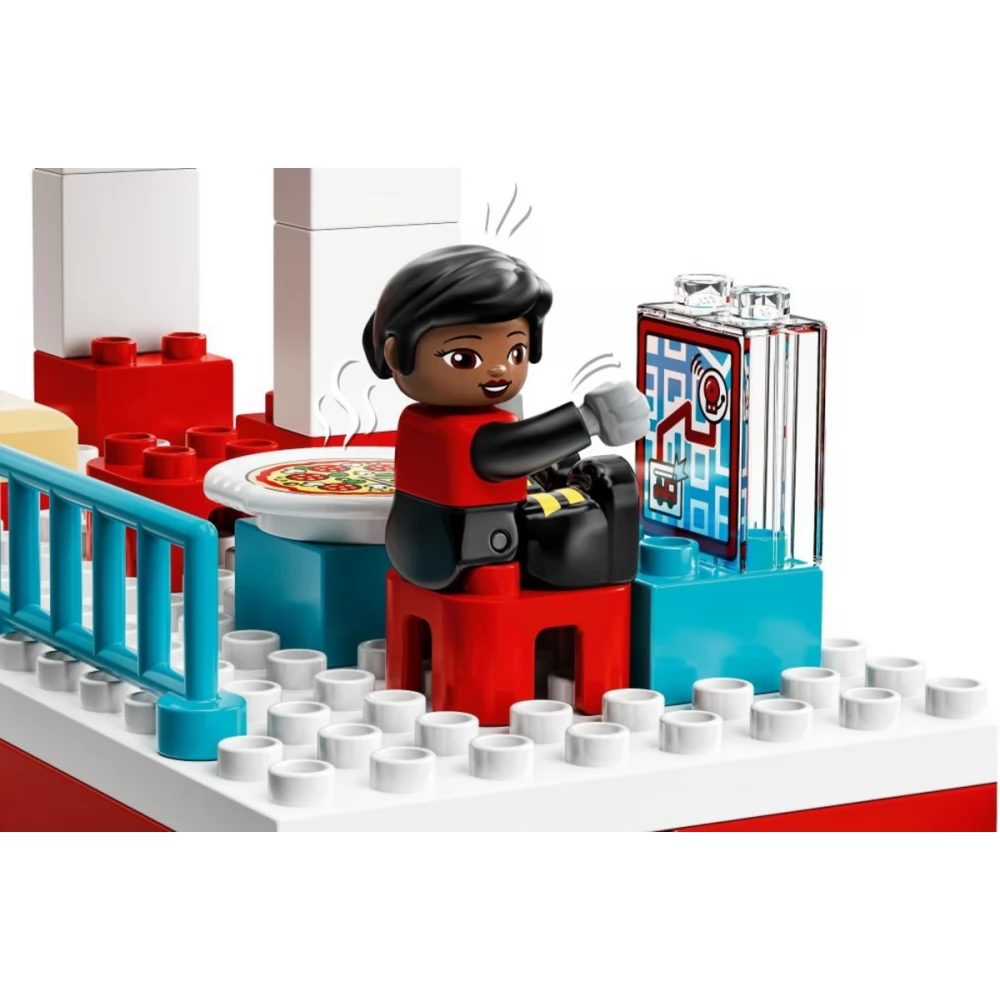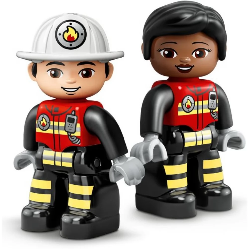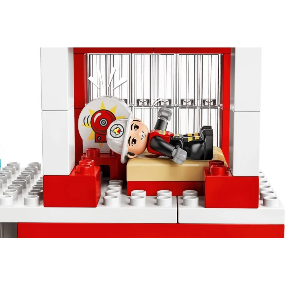A LEGO® DUPLO® Tűzoltóállomás és helikopter (10970) egy nagy méretű játékkészlet, tele klassz részletekkel és bámulatos funkciókkal, amik a 2 éves vagy nagyobb gyerekeket inspirálják. Egy újabb mozgalmas nap a tűzoltóállomáson A tűzoltócsapat lecsúszik a póznán, majd beszállnak a Told és Indul tűzoltóautóba, és útnak is indulnak szirénázva, villogó fényekkel (az elemeket megtalálod a csomagban), át a hatalmas lengőajtón. A helikopter felszáll a tetőről, hogy csatlakozzon a küldetéshez. Ha pedig az akció véget ért, a tűzoltást gyakorolják, vagy elfogyasztanak egy jól megérdemelt pizzát, utána pedig irány az ágy, hogy felkészüljenek a holnapi mozgalmas napra. Az óvodásoknak készült készlet telis-tele van fejlődést segítő játéklehetőségekkel, amik a finommotoros készségeket, az érzelmi tudatosságot és sok minden mást is fejlesztenek. Emellett veszélytelen módon mutatja be a tűzoltók munkáját. Játékos tanulás kisgyerekeknek A szülők értékes fejlődési mérföldköveket élhetnek át a kisgyerekeikkel, hiszen a LEGO DUPLO játékok egyenesen a gyerekek kezébe adják a végtelen játék, az önkifejezés és a vidám felfedezés lehetőségét.