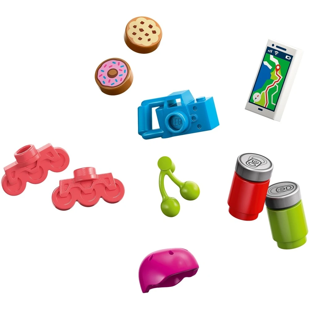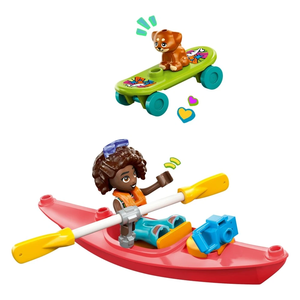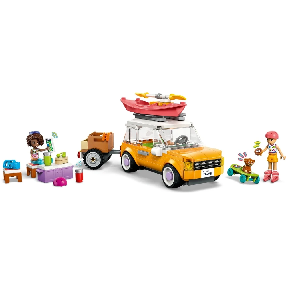 Nyiss meg a gyerekek előtt egy kalandokkal teli világot a 6+ éves lányoknak és fiúknak szóló LEGO® Friends Autós kirándulás a barátokkal (42659) építőszett segítségével! Ez az eseményekkel teli készlet egy utánfutós autót, 2 LEGO Friends minibabafigurát, egy aranyos kutyafigurát és rengeteg kiegészítőt tartalmaz, hogy még vidámabban teljen a játékidő. Küldd a gyerekeket egy kreatív utazásra, miközben segítenek Liann-nek és Aliyának bepakolni az autóba és felpakolni mindent a lecsatolható utánfutóra, amire a kiránduláshoz szükségük lesz. A barátok elöl ülnek, amíg Aira, a kutya az autó hátuljában. A kiegészítők közt kajakot, 2 sisakot, gördeszkát, görkorcsolyát, 2 széket, szendvicseket rejtő hűtőt, fánkot, sütit, cseresznyéket és jutalomfalatot találsz. Ha ennétek valamit, akkor a hűtő piknikasztallá alakítható. Fedezz fel még több (külön kapható) szociális-érzelmi fejlődést támogató építőjátékot a LEGO Friends világában! A szetthez hozzátartozik a LEGO Builder app is, amely az intuitív építést biztosítja: a gyerekek a modelleket felnagyíthatják és elforgathatják, szetteket menthetnek el, és építés közben nyomon követhetik a haladásukat.