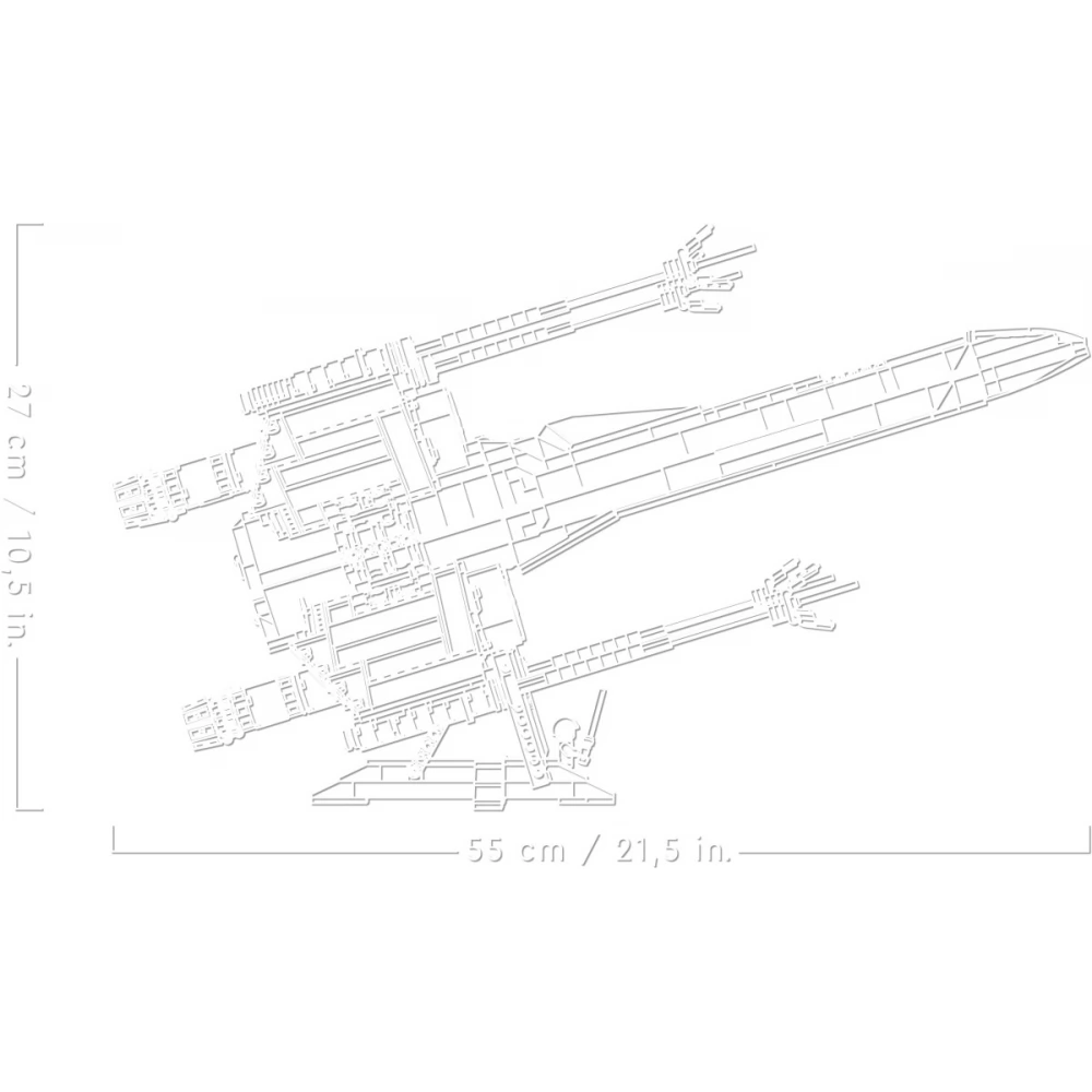 A legendás X-szárnyú vadászgép megépíthető és kiállítható modellje. Vedd elő a kreatív Erődet és építsd meg a klasszikus Star Wars trilógiából ismert X-szárnyú vadászgép pontos mását! Koncentrálj úgy, mint egy Jedi, és alkosd újra LEGO kockákból az olyan autentikus részleteket, mint a nyitható pilótafülke, a mögötte kialakított hely R2-D2 LEGO droidfigurájának, valamint a szárnyak, amiket repülő módból támadó módba állíthatsz egy kapcsoló segítségével. Kiállításra tervezve Az X-szárnyú 55 cm hosszú, amihez egy megépíthető bemutatóállvány tartozik, rajta egy plakettel, amin elolvashatod az X-szárnyú technikai adatait, emellett az új, fénykarddal ellátott Luke Skywalker LEGO minifiguráját is a helyére teheted. LEGO Builder Ez a felnőtteknek szánt, gyűjthető LEGO Star Wars készlet lenyűgöző ajándék saját magadnak, Star Wars rajongóknak vagy haladó LEGO építőknek. Az illusztrált útmutatót megtalálod a dobozban, emellett pedig a LEGO Builder appot is letöltheted, ahol felnagyíthatod és megforgathatod a modell 3D-s változatát és még sok más segítség is vár rád a komplex építési folyamat minden lépésén.