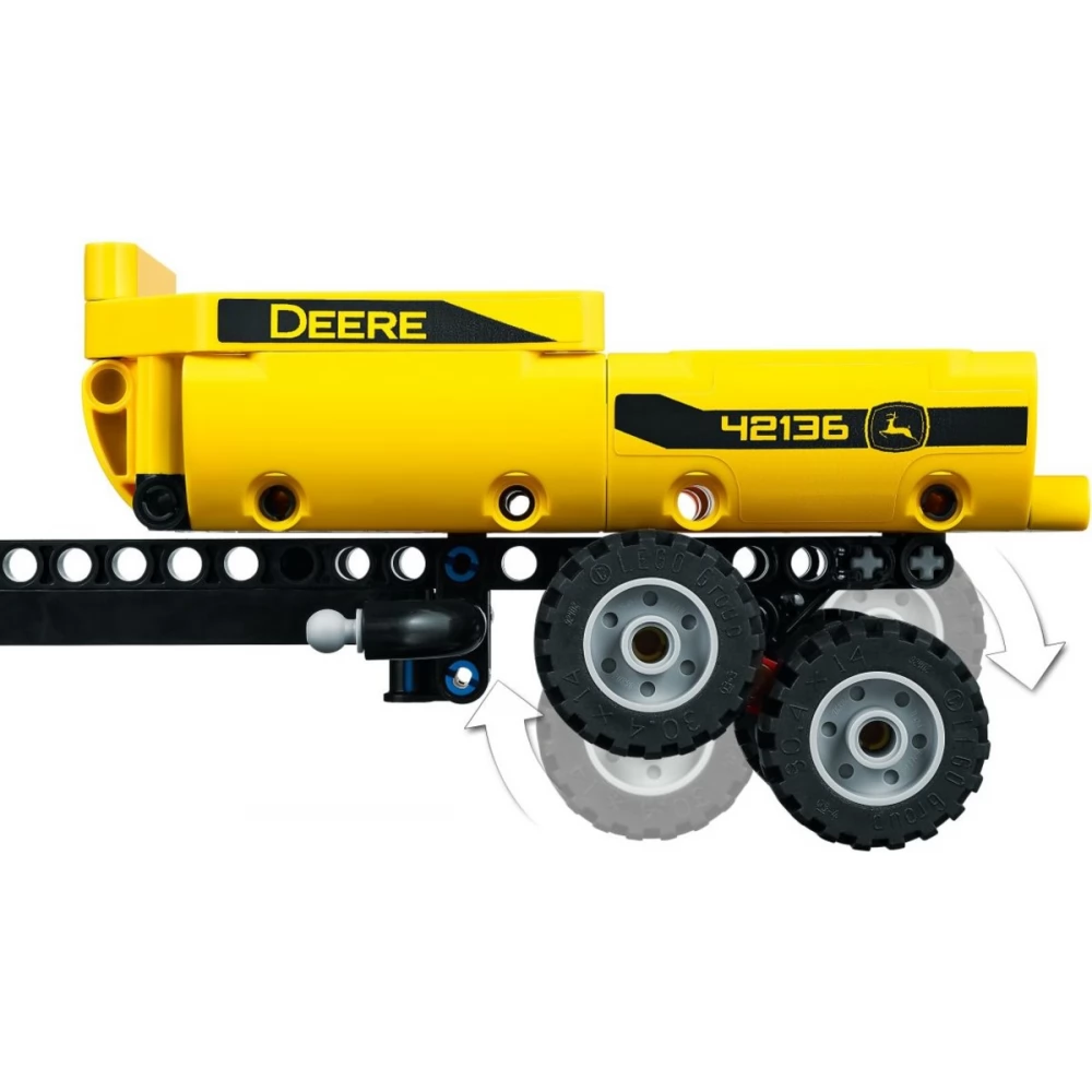 csuklós kormányzású és billenthető utánfutós LEGO Technic John Deere 9620R 4WD traktor klassz projekt olyan gyerekeknek, akik imádják a traktorokat. A John Deere-rel való együttműködésben készült traktor és utánfutó telis-tele van valósághű funkciókkal. A járműhöz hatalmas kerekek, csuklós kormányzás és egy forgatható üléssel ellátott vezetőfülke is tartozik. Építési kihívás és szórakoztató játék A traktorrajongó fiatalok örömmel fognak belevágni a saját John Deere traktoruk megépítésébe. Nagyszerűen fognak szórakozni, miközben felfedezik a modell összes részletét. A billenthető utánfutónak köszönhetően tökéletes a nehéz rakományok szállításához. A kerekei minden terepen képesek áthaladni, emellett egy extra csuklópántos vonórúd is tartozik hozzá, amivel a dombokat és völgyeket is könnyedén beveszi. Nagyszerű bevezetés a mérnöki tudományba A LEGO Technic építőmodell-készletek elemei valósághű mozgásokkal és szerkezetekkel vannak ellátva, amik megközelíthető és realisztikus módon vezetik be a fiatal LEGO építőket a műszaki tudomány világába.