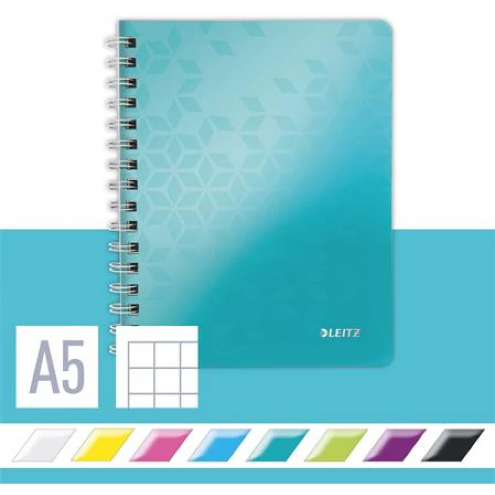 LEITZ Wow spirálfüzet A5 kockás 80 lap jégkék