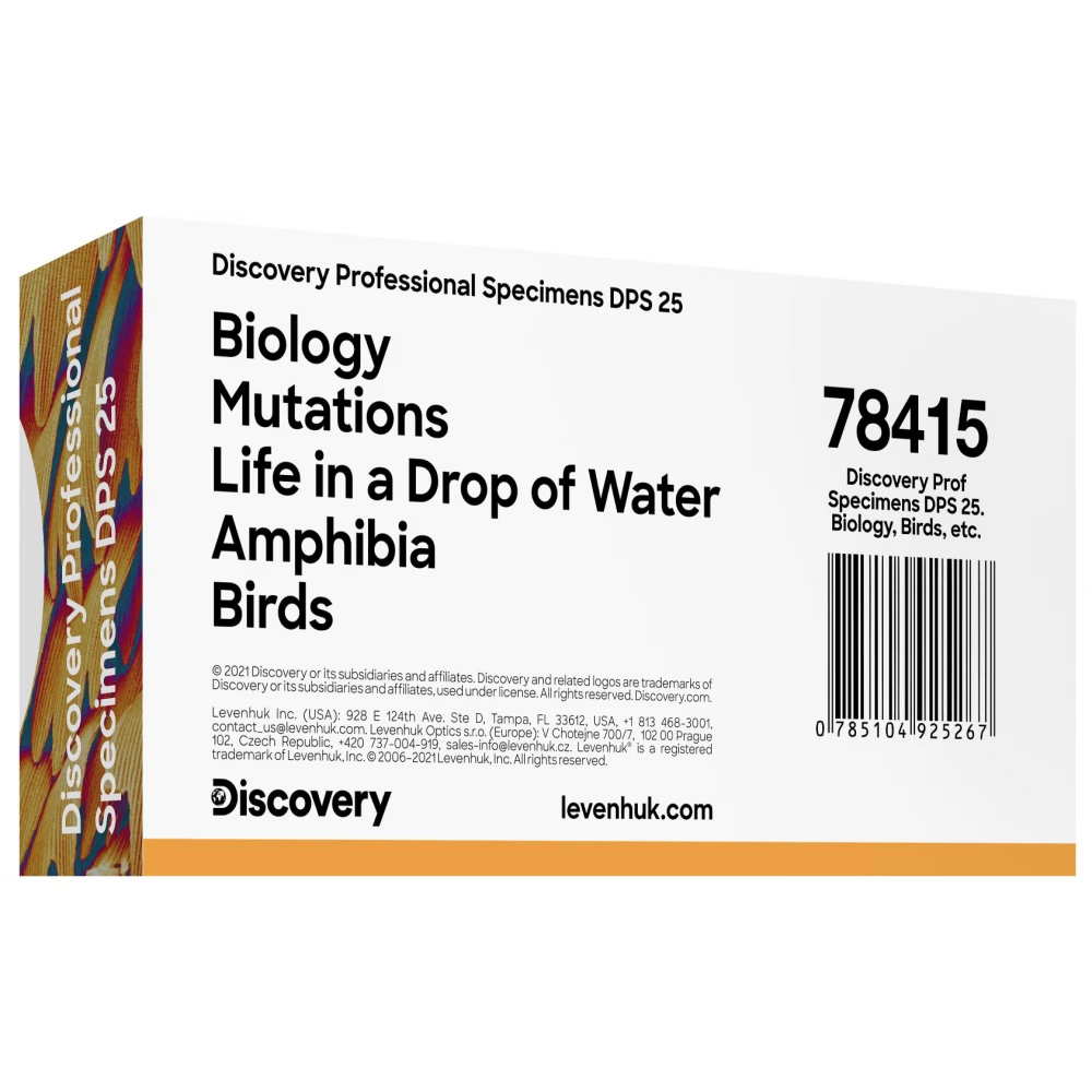 A Discovery Prof DPS 25 mikropreparátum mintakészlet. „Biológia, Madarak stb.” – előkészített tárgylemezekből álló, 25 darabos nagy készlet mikroszkóppal végezhető kutatásokhoz. A Discovery Prof DPS 5 sorozat öt speciális készletét tartalmazza: „Madarak”, „Mutációk”, „Élet egy csepp vízben”, „Kétéltűek” és „Madarak”. A készletekkel tanulmányi tapasztalatok szerezhetők az egyes biológiai tudományágak terén és átfogó betekintést nyújtanak az élő szervezetek felépítésébe is. A számtalan növényi és állati minták egy része tipikus, más részük külső tényezők által sérült szövetet tartalmaz.