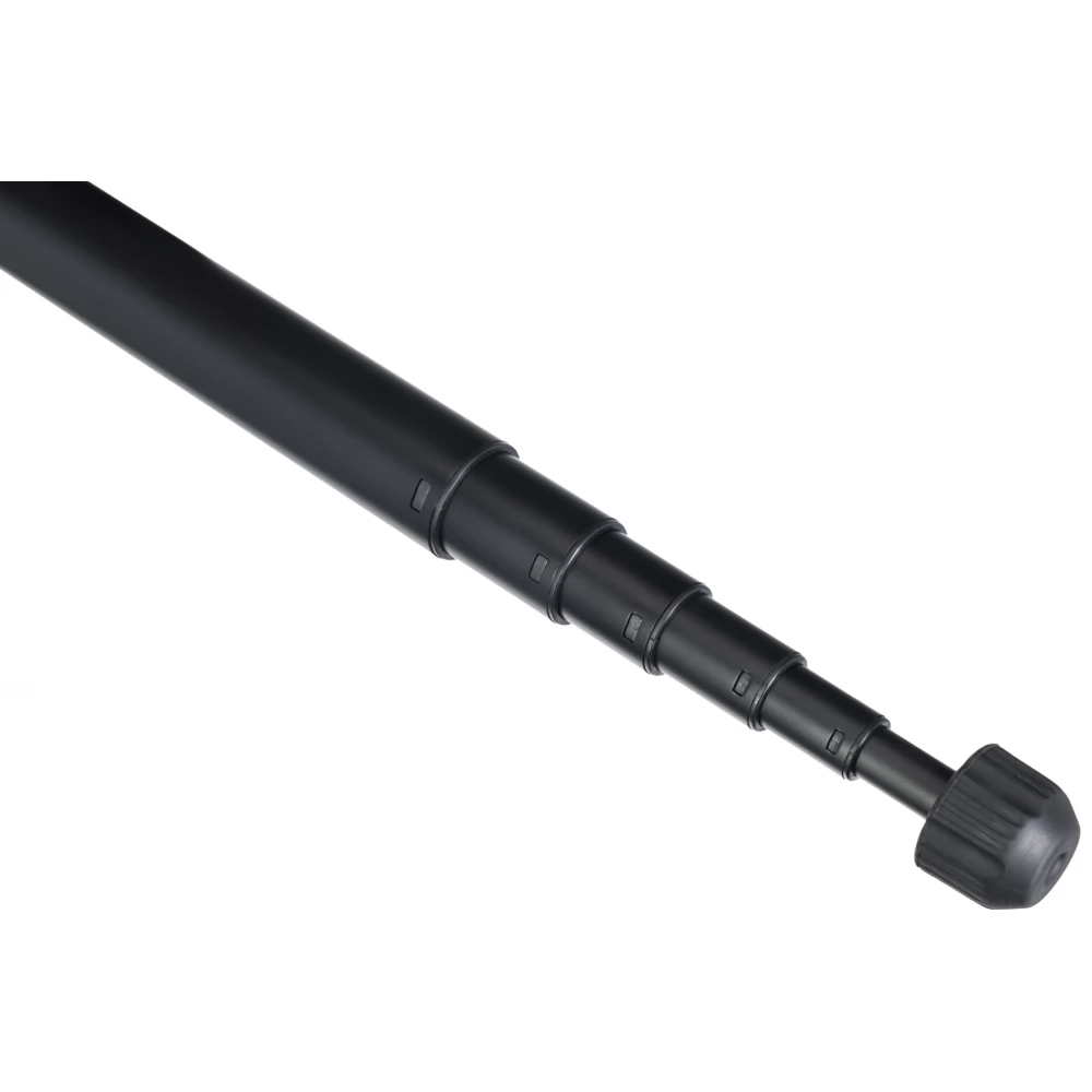 A háromlábú állvány magassága könnyen állítható a lábak vagy a középső oszlop kihúzásával. Csuklópántos zárak rögzítik az állványt és gondoskodnak a stabilitásáról. A további stabilitás érdekében a háromlábú állvány egy horoggal is rendelkezik, ahová súlyokat lehet akasztani. Az gumibevonatnak köszönhetően a lábak nem csúsznak, és nem karcolják meg a padlót. A beépített vízmérték segítségével ellenőrizheti, hogy az állvány mennyire egyenletesen van elhelyezve.