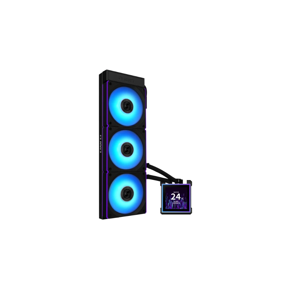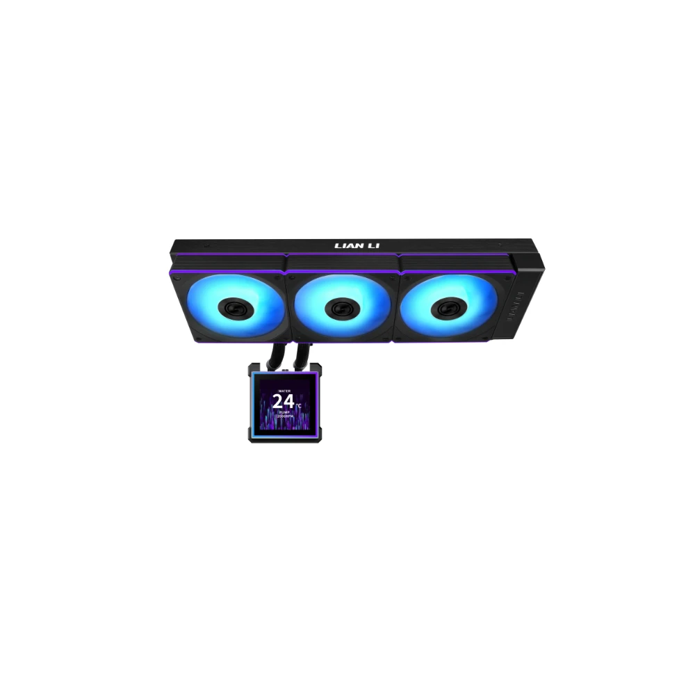 Kompakt, univerzális vízhűtés 3 darab 120mm-es vezérelhető ARGB világítású és PWM sebesség szabályzású Lian Li TL ventilátorral, 360mm-es radiátorral és egy 3.4” IPS LCD (480×480 felbontású) kijelzővel felszerelt CPU hűtőblokkal. A kijelző teljesen testre szabható, különböző témák közül lehet választani, megjeleníthetünk valós idejű rendszerinformációkat vagy akár képet, videót, animációt. A kijelző rész ugyanakkor mágnesesen kapcsolódik, így kikapcsolás nélkül eltávolítható ez beszereléskor hasznos, nem kell kockáztatnunk a sérülést.