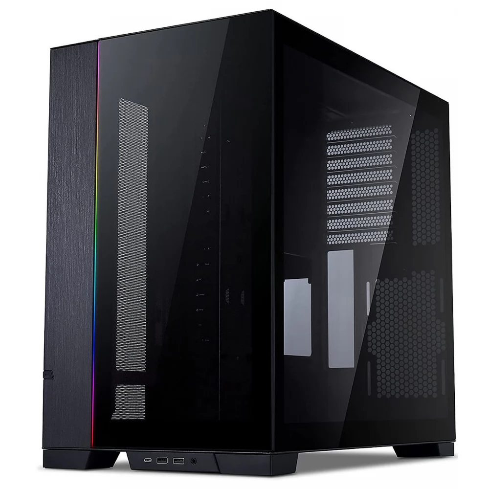 - Előlapi edzett üveg panel az alkatrészek és az RGB megjelenítésére