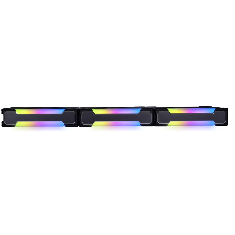 3 darab 120mm-es vezérelhető ARGB világítású házhűtő ventilátor, amit a különleges reteszelésnek köszönhetően, kábelek felhasználása nélkül kapcsolhatunk össze (táp és vezérlés). A V2 sorozat ugyanakkor 10% hatékonyabb elődjénél.