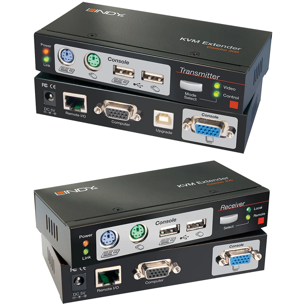 A Lindy Cat.6 VGA, USB és PS/2 KVM Extender lehetővé teszi a felhasználók számára, hogy egyetlen billentyűzetről, egérről és kijelzőről vezéreljenek forráseszközt, például PC-t Cat.5e/6 RJ45 kábellel akár 300 méter távolságig. Támogatja az 1920x1200-ig terjedő analóg felbontást VGA-portokkal, ideális PC vagy munkaállomás nagyon nagy távolságból történő kezelésére. Az Extender PC- és konzolportokkal rendelkezik az adón, hogy további kijelzőt, billentyűzetet és egeret csatlakoztasson a helyi vezérléshez, valamint konzol- és PC-portokat a vevőegységen egy további számítógép csatlakoztatásához a távoli konzol oldalán. Mindkét egységhez csatlakoztathat USB vagy PS/2 billentyűzetet, egeret és PC-t a mellékelt KVM kábelekkel. Lehetőség van egy második forrás csatlakoztatására is a vevőegységre, és az előlapon lévő kapcsológomb megnyomásával vagy gyorsbillentyűvel vezérelhető. Az OSD menün keresztül a felhasználók beállíthatják a videojelet, az EDID-t, engedélyezhetik a jelszavas védelmet és módosíthatják a gyorsbillentyűket.
