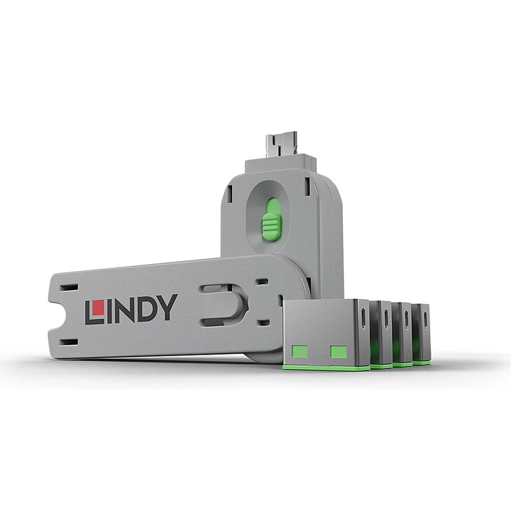 LINDY 40451 USB biztonsági dugó + kulcs zöld (kulcs + 4db dugó)