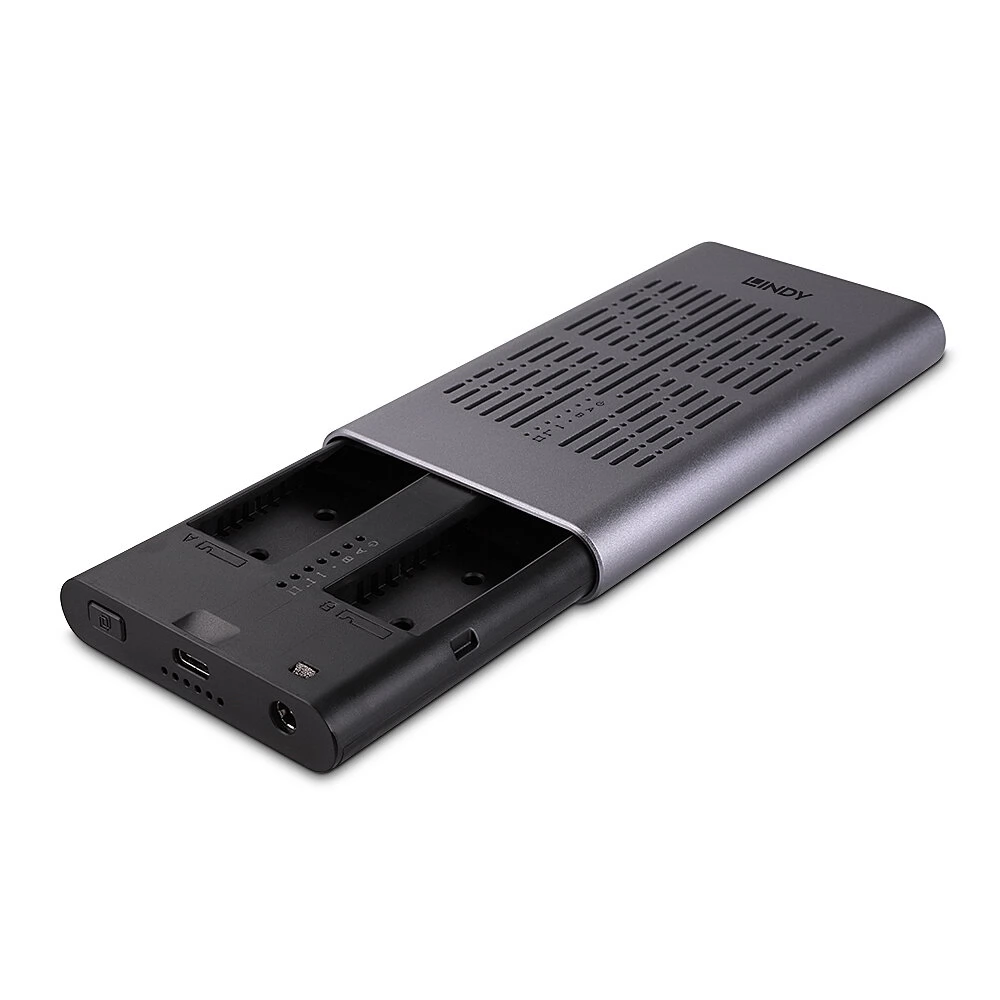 LINDY 43382 2x M.2 USB 3.2 Gen 2x2 Külső SSD ház szürke