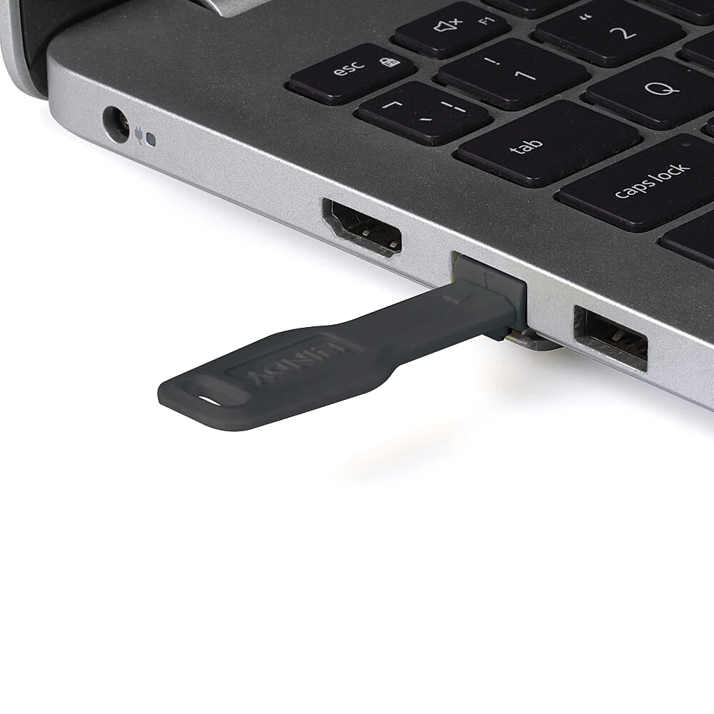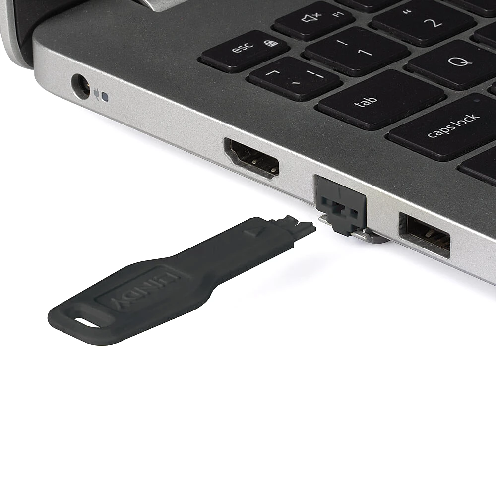 Biztonsági megjegyzés: A portblokkolók csak alapvető fizikai és vizuális elrettentő eszközként szolgálnak a manipulációtól. Nem akadályozza meg az elszánt támadót, aki fizikai hozzáférést szeretne elérni egy RJ-45 porthoz.