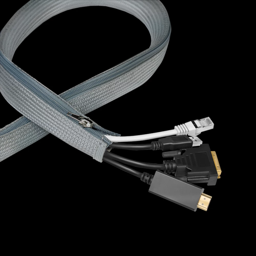 LOGILINK Kábelhüvely cipzárral. poliészter. O 50 mm. szürke. 1 m