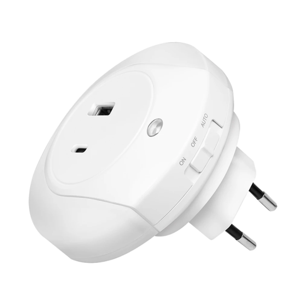 Kellemes meleg fehér fényt biztosító LED éjszakai lámpa beépített alkonyszenzorral, amely szürkületkor automatikusan bekapcsolja a világítást. A 10 lm fényáram és 4000 K színhőmérséklet kellemes megvilágítást nyújt.