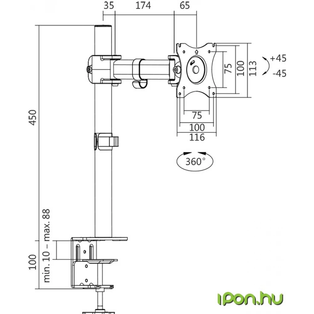 - Szabvány: VESA 75x75, 100x100 mm